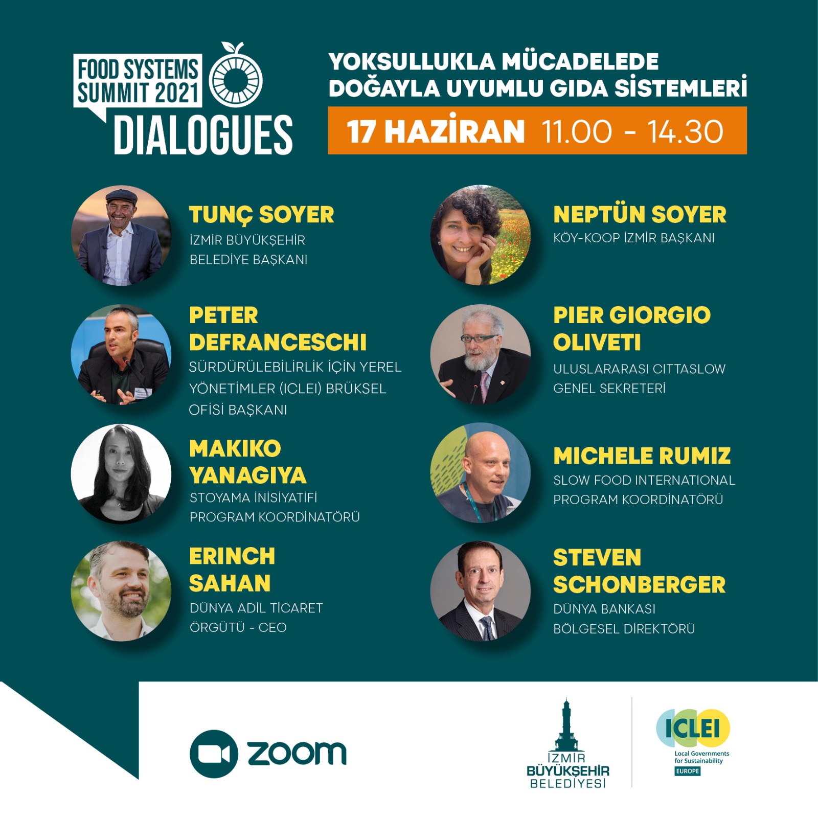 İzmir Büyükşehir Belediye Başkanı Tunç Soyer’in “Başkan Bir Tarım Mümkün” vizyonu ve “doğayla uyumlu kent” anlayışı doğrultusunda BM 2021 Gıda Sistemleri Zirvesi öncesinde İzmir’de “Yoksullukla Mücadelede Doğayla Uyumlu Gıda Sistemleri” adlı diyalog toplantısı düzenlenecek. 17 Haziran’da çevrim içi yapılacak toplantıya Türkiye’yle beraber Japonya, İtalya, ABD ve Almanya'dan konuşmacılar da katılacak. 11.00’de başlayacak toplantıda İzmir Büyükşehir Belediye Başkanı ve ICLEI (Sürdürülebilirlik İçin Yerel Yönetimler Birliği) Yönetim Kurulu Üyesi Tunç Soyer, Uluslararası CittaSlow Genel Sekreteri Pier Giorgio Oliveti, Dünya Adil Ticaret Örgütü CEO’su Erinch Sahan, İzmir Köy-Koop Birlik Başkanı Neptün Soyer, Dünya Bankası Bölgesel Direktörü Steven Schonberger, Sürdürülebilirlik İçin Yerel Yönetimler (ICLEI) Brüksel Ofisi Başkanı Peter Defranceschi, Stoyama İnsiyatifi Program Koordinatörü Makiko Yanagiya ve Uluslararası SlowFood Program Koordinatörü Michele Rumiz konuşacak. Ardından “Doğayla Uyumlu Adil Gıda Sistemleri” ve “Metropoller İçin Yenilikçi Gıda Sistemleri” adlı iki çalıştay yapılacak. 13.30’daki değerlendirme bölümünün ardından toplantı sona erecek.Bangladeş, Danimarka, Brezilya ve Kenya’da şehir buluşmalarıBirleşmiş Milletler Gıda ve Tarım Örgütü (FAO) ve ICLEI (Sürdürülebilirlik İçin Yerel Yönetimler Birliği) Eylül 2021'deki Gıda Sistemleri Zirvesi öncesinde yerel paydaşların deneyimlerini aktarabilmeleri için küresel ölçekte diyalog toplantıları düzenliyor. “Çok Paydaşlı Gıda Diyalogları” adı verilen bu süreç sayesinde, tarımın ve gıda sistemlerinin küresel ölçekte kapsamlı bir araştırmasının yapılması, fırsatlar ve zorlukların belirlenebilmesi ve gıda sistemlerinin farklı unsurları arasındaki ilişkilerin incelenebilmesi hedefleniyor. Eylül 2021’deki BM Gıda Sistemleri Zirvesi öncesinde Bangladeş Dakka, Danimarka Kopenhag, Brezilya Rio de Janeiro ve Kenya Nairobi’de de şehir buluşmaları yapılıyor.