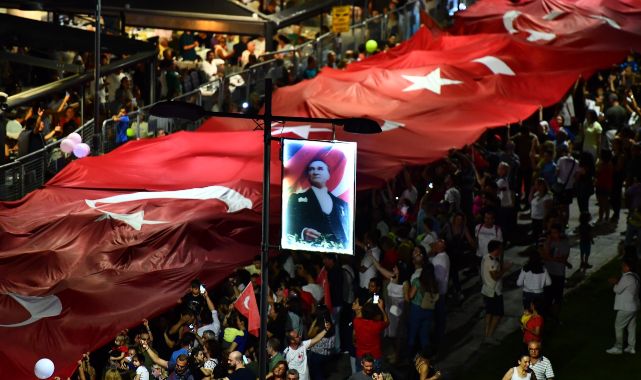- Vali, Ege Ordusu ve Garnizon Komutanı ile Büyükşehir Belediye Başkanının tören aracında halkın ve törene katılanların bayramını kutlaması