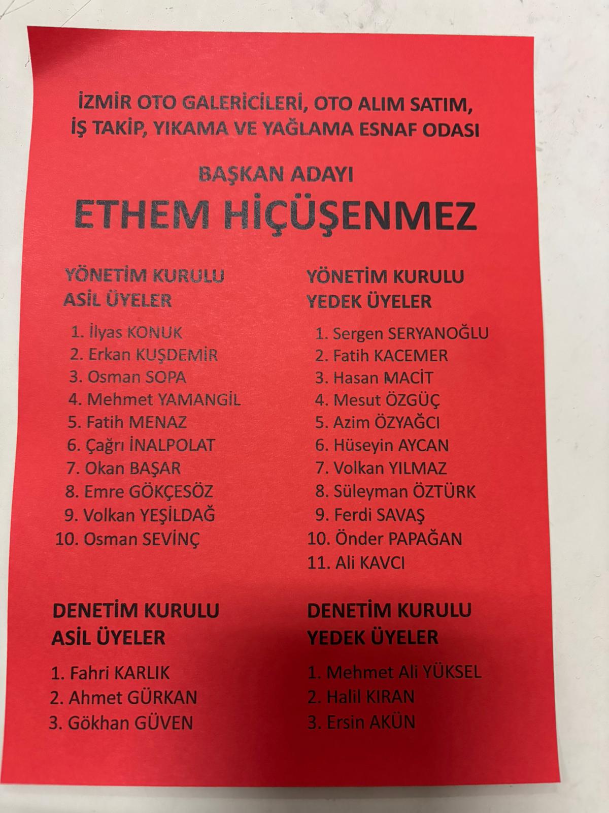 Tartışmalı geçen İzmir Oto Galericileri Müşavir Yıkamacı Esnaf Odası’nın genel kurulu tamamlandı.