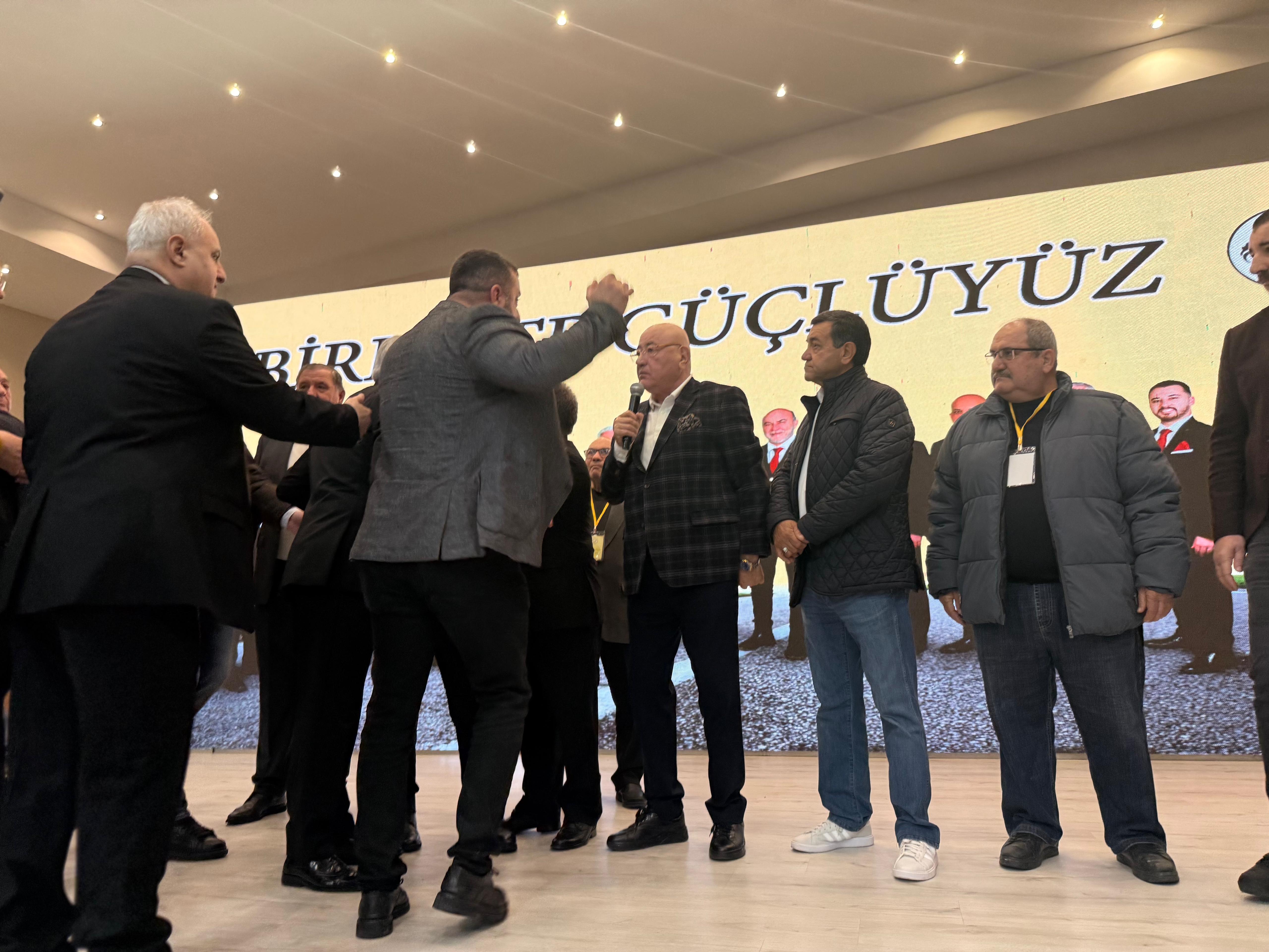 Başkan Ata’ya yakın bazı oda başkanlarının sahneye çıkarak kurucuların karşısında yer alması, el kol hareketleri ve sert sözlerle Ata’yı savunması, ortamı arbedenin eşiğine taşıdı. Gerilim, kürsüden sahneye, sahneden salonun geneline yayıldı. Bu anların en çarpıcı sahnesi ise Pınarbaşı Esnaf Odası Başkanı Cezmi Çulhaoğlu’nun, adeta Başkan Ata’nın güvenlik görevlisi gibi davranarak Başkan Zafer Dursun’a parmak sallamasıyla yaşandı. Dursun’un bu sertliğe karşılık, Çulhaoğlu’nun yanağını şefkatle okşarcasına yaptığı el hareketi ise salonun hafızasına kazınan, gerilimin ortasında ironi yüklü bir an olarak kayda geçti.