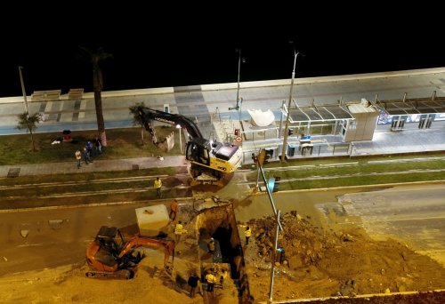 Çalışmalar gece gündüz sürüyorGüzelyalı bölgesindeki çalışmaların en önemli aşamalardan biri de sokağa çıkma kısıtlaması sayesinde kent trafiğini aksatmadan aşıldı. Mustafa Kemal Sahil Bulvarı ve tramvay hattının altından geçen yağmur suyu hattının montajı sabaha kadar süren yoğun bir çalışmayla yapıldı. Bu süre içinde trafik akışı ve tramvay seferleri durduruldu. Günün ilk ışıklarıyla birlikte çalışma tamamlanarak yol ve tramvay hattı ulaşıma açıldı.Geçmişteki problemler yaşanmayacakKanalizasyon Dairesi Başkanı Mustafa Teloğlu, Güzelyalı semtinde taşkınları önlemeye yönelik yürüttükleri çalışmalar kapsamında 16 sokaktaki mevcut yağmur suyu hattını genişleterek denize kadar ulaştırdıklarını belirtti ve şöyle konuştu: