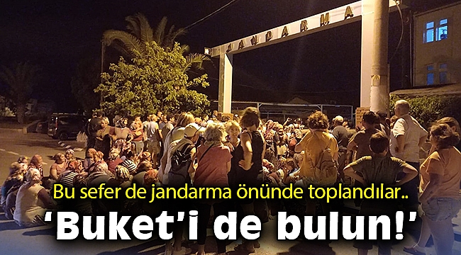 Alkışlar eşliğinde oturma eylemi yapan vatandaşlar, kayıp kızın bulunmasını istedi. Dikili’den çeşitli sivil toplum kuruluşlarının da destek olduğu oturma eyleminde Buket’in annesi Gülşah U., baygınlık geçirdi. Jandarma ekipleri, aile fertlerinden süre isteyerek kızlarını bulacakları sözü vermesi üzerine kalabalık dağıldı.