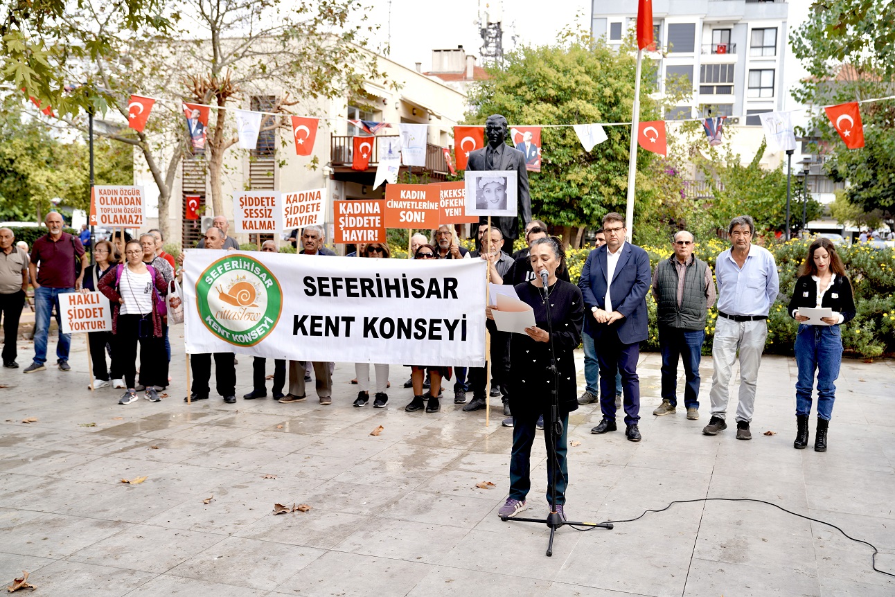 Kadına karşı şiddet, Seferihisar’da protesto edildi. Seferihisar Kent Konseyi öncülüğünde Cumhuriyet Meydanı’nda gerçekleştirilen eyleme, katılım yoğun oldu.