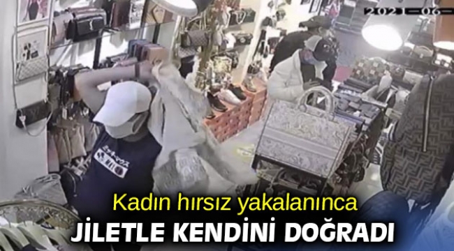 Kadın hırsız yakalanınca jiletle kendini doğradı