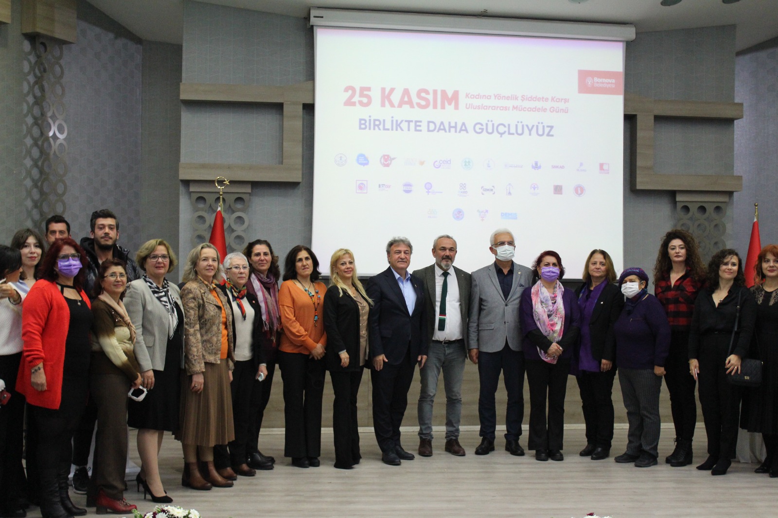 25 Kasım’da (yarın) yayınlanacak bildirinin tanıtımıyla ilgili toplantı geniş katılımla gerçekleştirildi. Bildiriye taraf olan tüm kurum ve kuruluşlara teşekkür eden Bornova Belediye Başkanı Dr. Mustafa İduğ, “Tek isteğimiz kadına yönelik şiddetin bir an önce son bulması” diye konuştu.