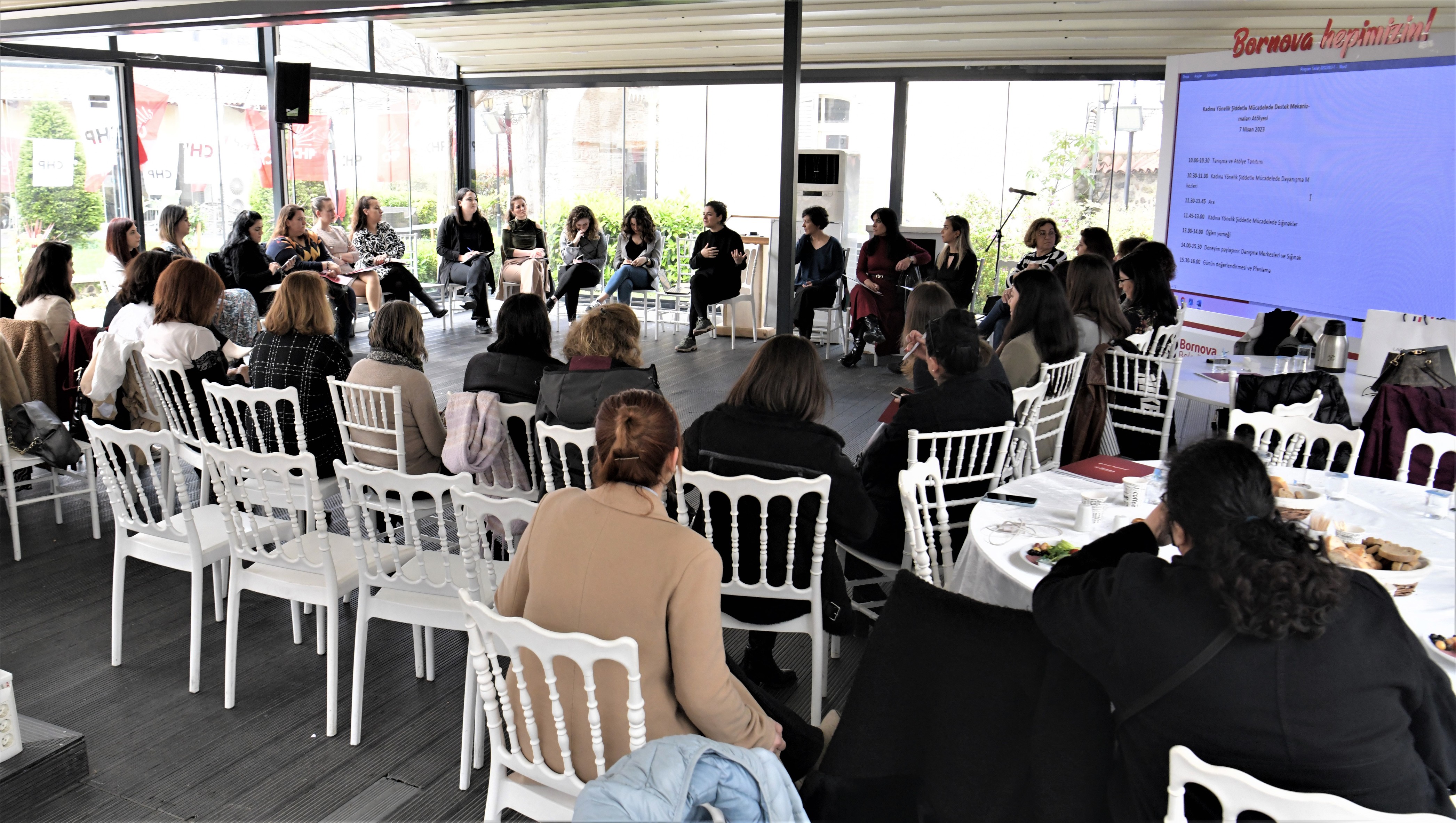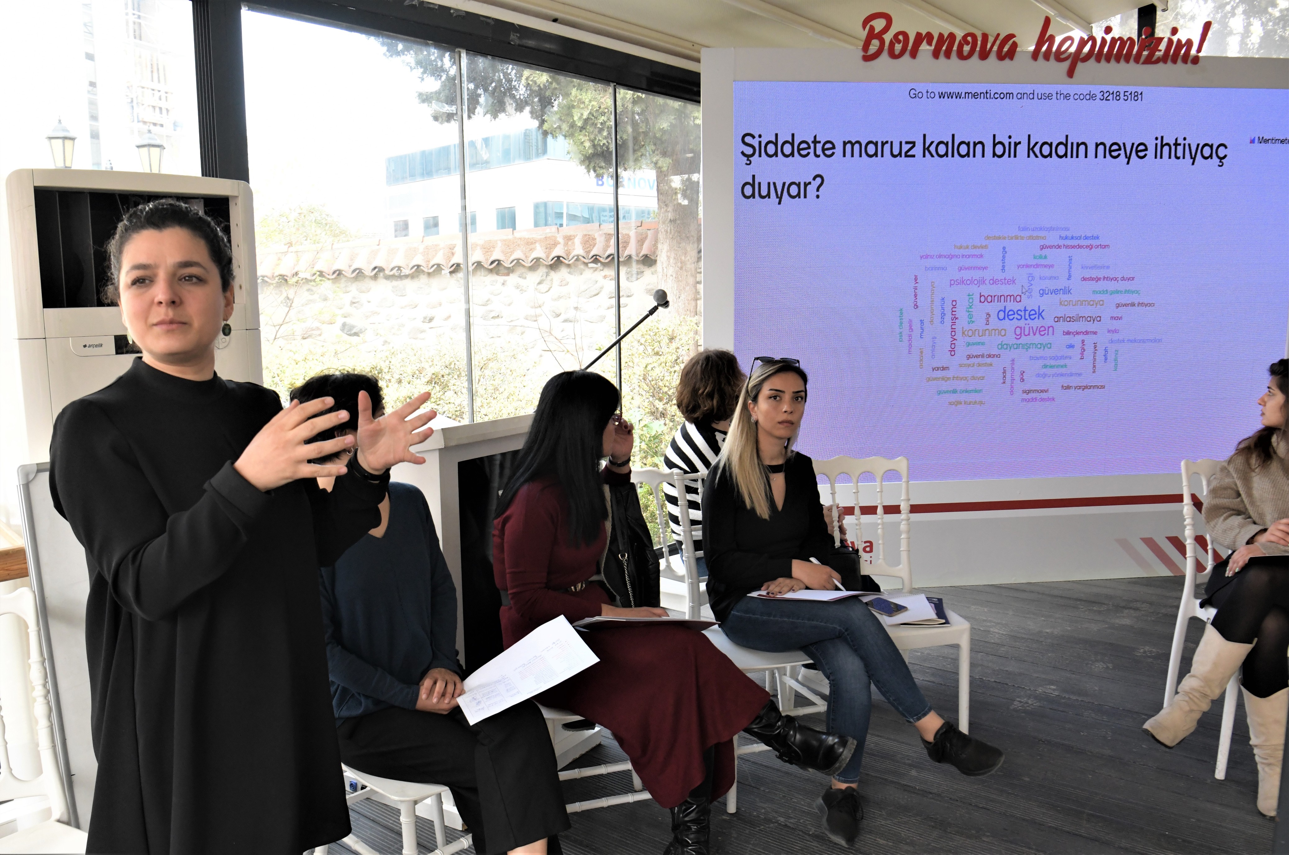 Bornova Belediyesi Kent Arşivi ve Müzesi Dramalılar Köşkü’nde gerçekleşen toplantıda Mor Çatı Kadın Sığınağı Vakfı gönüllüleri Tülin Semayiş, Melike Keleş ve Açelya Uçan bilgilendirmelerde bulundu. KDM işleyişi ve deneyim paylaşımı üzerine atölye çalışmaları gerçekleştirildi. Katılımcılara ‘Kadına Yönelik Şiddetle Mücadelede Destek Mekanizmaları nelerdir?’, ‘Sığınak Nedir?’, ‘Sığınağa ne zaman ihtiyaç duyulur?’, ‘Şiddete maruz kalan kadın neye ihtiyaç duyar?’ gibi konularda bilgiler verildi.Kadınlara Pozitif ayrımcılıkKadınların kendinden emin, güvenli ve sosyal bireyler olarak hayatlarına devam etmesi için çalıştıklarını ifade eden Bornova Belediye Başkanı Dr. Mustafa İduğ, “Kadınlara pozitif ayrımcılık yapıyoruz. Onların hayatın içinde yer alması, kendi ekonomisini yaratabilmesi için düzenlediğimiz kurslar ve hayata geçirdiğimiz projeler ile destek veriyoruz. Vermeye de devam edeceğiz”dedi.