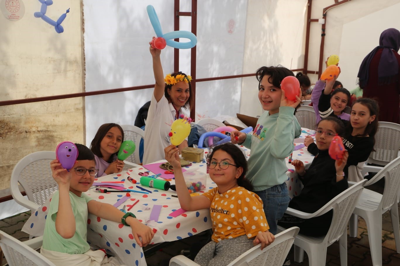 Kahramanmaraş Avşar Çadır Kentinde İzmir İl Milli Eğitim Müdürlüğünden gönüllü öğretmen, idareci ve AR-GE personeli ile 25’ten fazla atölyede çeşitli etkinlikler gerçekleştirildi. Proje çerçevesinde 'Modüler Robot Atölyesi', 'Planetaryum ile Uzay Atölyesi', 'Akıl ve Zeka Oyunları Atölyesi', 'Move and Freeze Atölyesi', 'Kimya Atölyesi', 'Biyolojik Çeşitliliği Gözlemliyorum Atölyesi', 'Titreşimin Gücü Atölyesi', 'Seramik ve Ebru Sanatı Atölyesi', 'Drama', 'Anadolu Masalları', 'Gazetecilik Atölyesi' gibi birçok alanda atölyeler yapıldı. Öğrencilerin bilime ve teknolojiye merakını artırmanın hedeflendiği etkinliklerde aynı zamanda depremin yıkıcı psikolojik etkilerinden uzaklaşmasına katkı sağlandı. Ayrıca şişme oyun parkları kurularak öğrenciler için eğlenceli bir şenlik düzenlenmiş oldu.