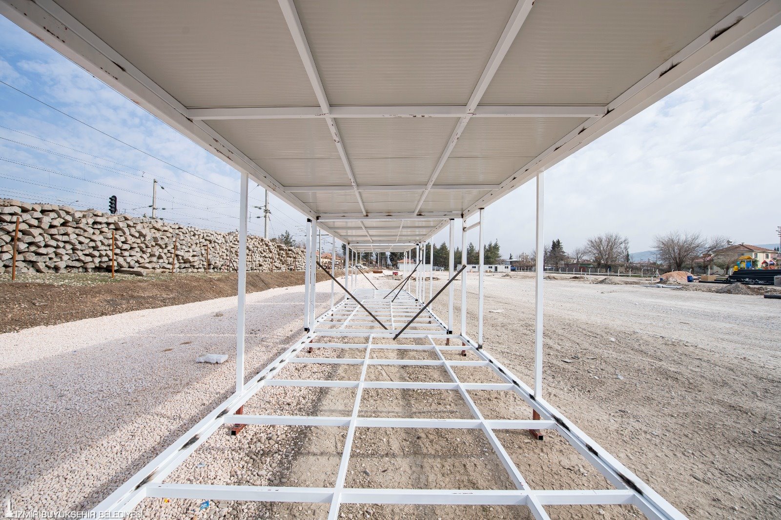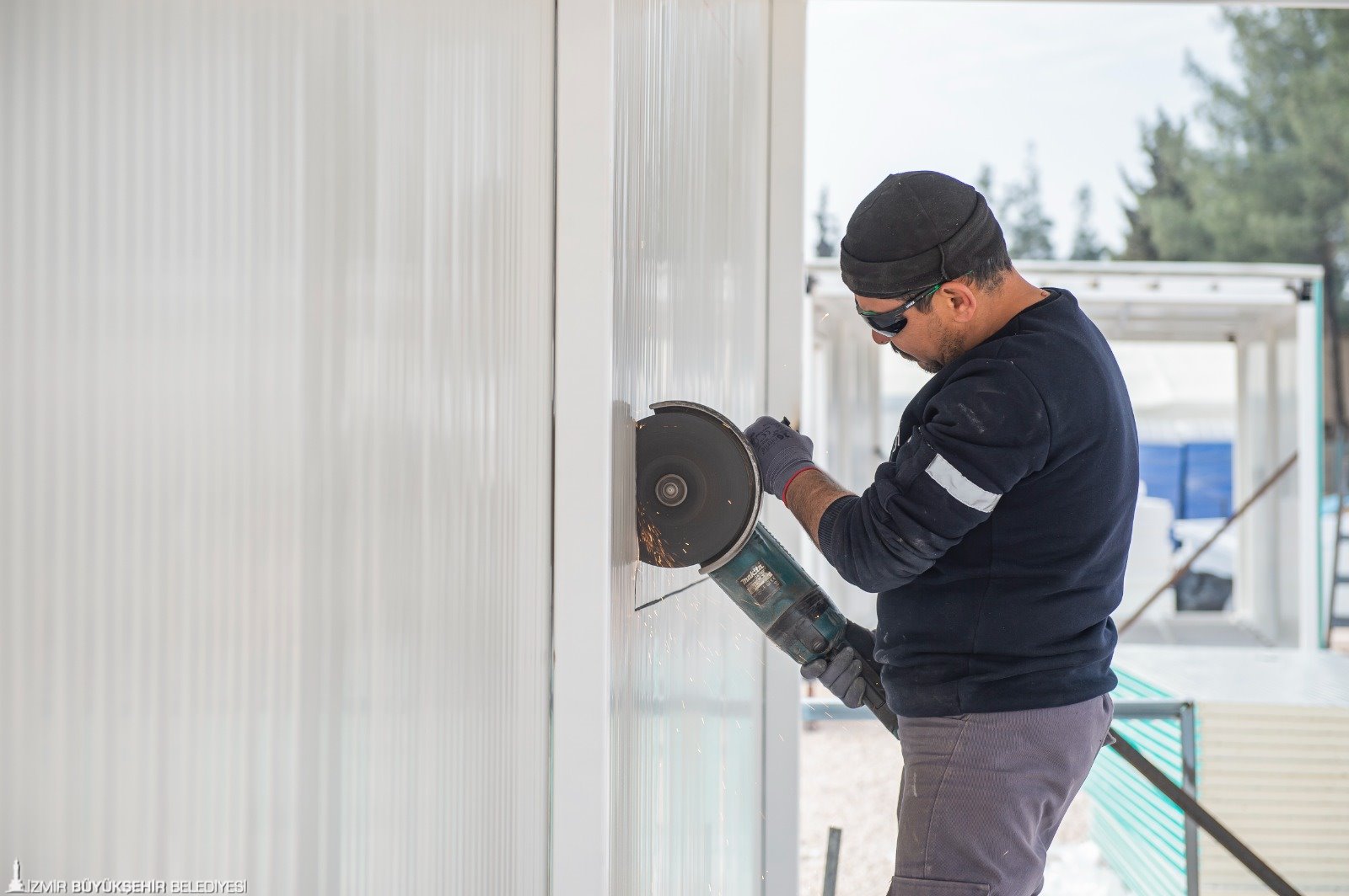 ESHOT Genel Müdürlüğü Yapı Tesisleri Dairesi Başkanı Semih Kök, kurum atölyelerinde kuruluma hazır halde üretilen ve parça parça bölgeye taşınan 60 konteynerin 12’sinin yerleştirildiğini belirterek “Şu an birleştirme çalışmaları devam ediyor. Bu alanda 232 yaşam alanı olan konteyner yapılacak. Bunun dışında ibadethane, çamaşırhane, masal evi, rehabilitasyon merkezi, revir gibi alanlarımızla beraber 255 konteyner yapmış olacağız. Bunu da iki ay içinde tamamlayıp teslim etmeyi planlıyoruz. Altyapı çalışmalarımız hızla devam ediyor. 172 konteyner için altyapı çalışmasını tamamladık” diye konuştu.