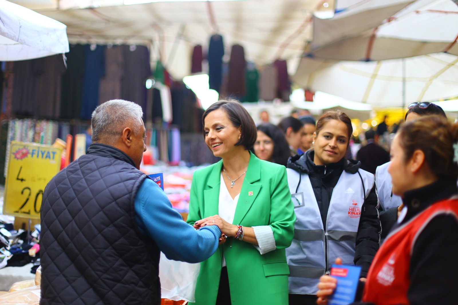 Sıcak Yuvam Bakım Merkezi ziyaretinin ardından Kınay, Refet Bele Mahallesi’nde pazaryerini ziyaret etti. Burada Pazar esnafı ve vatandaşlarla buluşan Kınay, onların sorunlarını dinledi. Karabağlar’ın önümüzdeki dönem yeni, modern ve çok amaçlı olarak kullanıma uygun pazaryerlerine kavuşacağını belirten Kınay, haftanın 7 günü farklı kullanımlara hizmet edecek pazaryerleri olacaklarının altını
