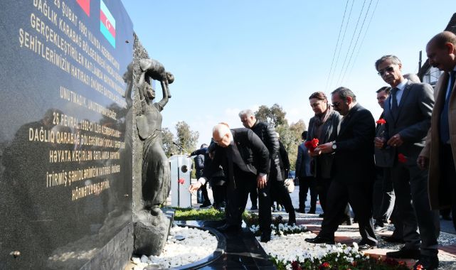 Karabağlar Belediyesi’yle Azerbaycan Türkleri ve Dost Dernekler Federasyonu tarafından Salih Omurtak Mahallesi’ndeki Hocalı Anıtı önünde düzenlenen törene, Karabağlar Belediye Başkanı Muhittin Selvitopu, İzmir Büyükşehir Belediyesi Başkan Vekili ve İzmir Kent Konseyi Başkanı Nilay Kökkılınç, Azerbaycan dernekleri, siyasi parti ve sivil toplum kuruluşlarının yöneticileriyle üyeleri, meclis üyeleri, muhtarlar ve vatandaşlar katıldı.Tören, katliamda ve deprem felaketinde yaşamını yitirenlerin anısına saygı duruşuyla başladı. Ardından Azerbaycan Milli Marşı'yla İstiklal Marşımız okundu.Başkan Selvitopu yaptığı konuşmada, Türkiye'nin acılı günlerden geçtiğini vurgulayarak, “Bu hepimizin acısı, insanlığın acısı. Bundan sonra benzer felaketlerin yaşanmaması için gerekli önlemleri almak ve 84 milyon insanımızın huzur içinde yaşamını sürdürmesini sağlamak zorundayız” dedi.Hocalı'da da eline hiç silah almamış masum insanların emperyalist güçlerce katledildiğini vurgulayan Başkan Selvitopu, “Artık rahat uyusunlar. Karabağ özgürlüğüne kavuştu. Mustafa Kemal Atatürk'ün söylediği gibi bizim dileğimiz yurtta ve dünyada barışın, dostluğun, kardeşliğin sağlanması. Bunun için güçlü ve birlik içinde olmalıyız” diye konuştu.Azerbaycan Türkleri ve Dost Dernekler Federasyonu Başkanı İsa Ambarcı da Hocalı'da katledilenlerin çocuklarının on yıllar sonra Karabağ Zaferi'ne imza attığını belirterek, “Hiçbir emperyalist güç bize zincir vuramayacağının farkında olmalı” dedi.Ambarcı daha sonra Azerbaycan'ın Karabağ Zaferi'ni simgeleyen Suşa Çiçeği Rozeti'ni Başkan Selvitopu'na takdim etti.Tören, anıta karanfillerin bırakılmasıyla sona erdi.