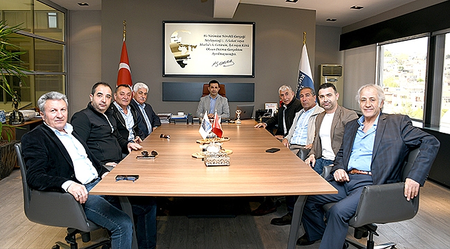 araya geldi. Başkanlık makamında gerçekleşen görüşmeye Ege Mahallesi Muhtarı