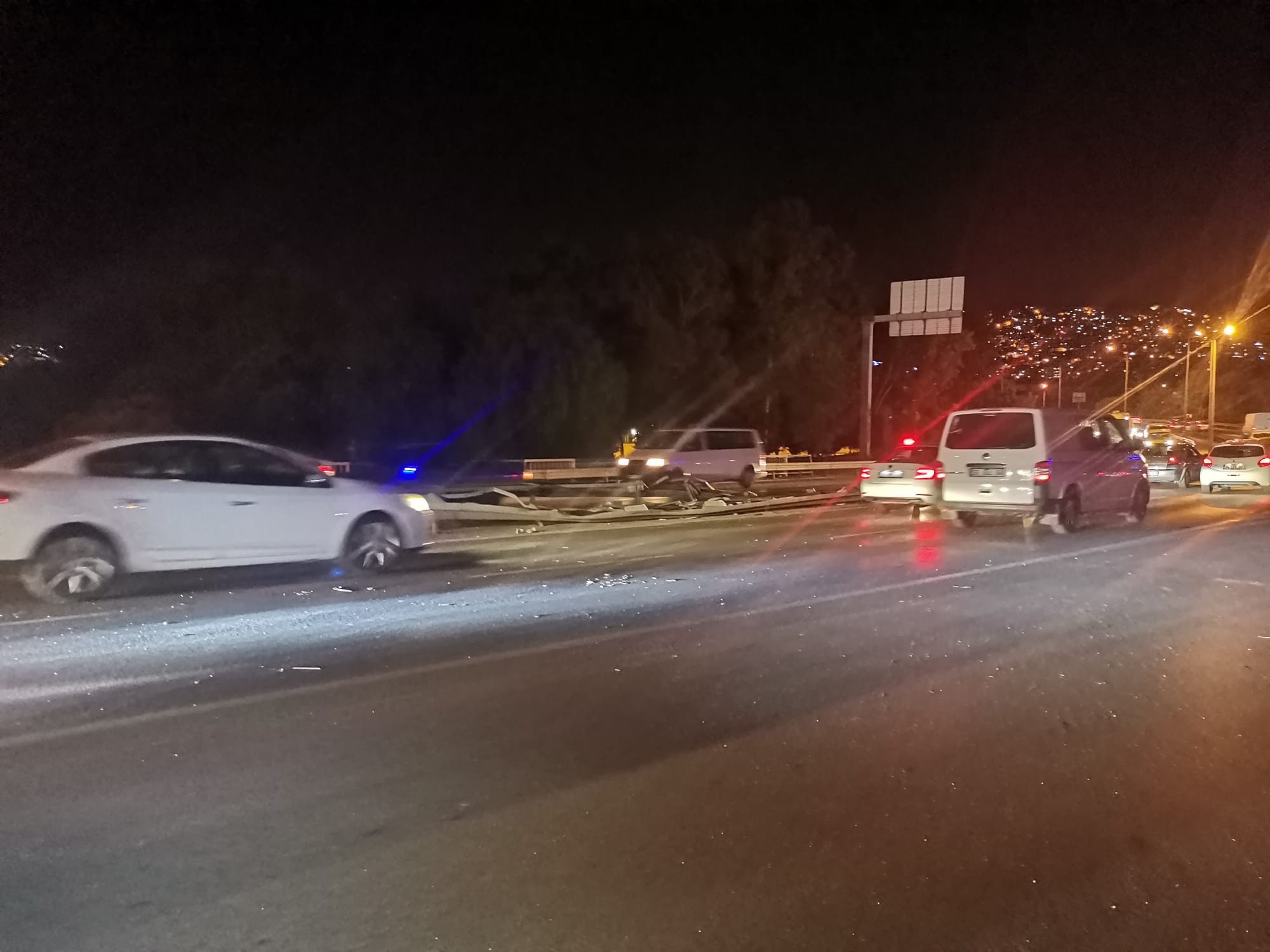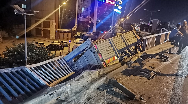 Kaza, dün akşam saat 21.30 sıralarında Mürselpaşa Bulvarı Şaraphane Köprüsü üzerinde meydana geldi. İddiaya göre, Konak yönünden Bayraklı istikametine gitmekte olan Osman Ö. (53) idaresindeki 45 AFK 127 plakalı kamyon, sürücüsünün direksiyon hakimiyetini kaybetmesi sonucu karşı şeride geçti. Karşı şeride geçen kamyon, bu esnada Mehmet Emin Ç., yönetimindeki 34 BZU 836 plakalı otomobile çarptı. Bir süre otomobili sürükleyen kamyon, ardından bariyerleri de aşarak alt yola düştü. Kazayı gören trafikteki sürücüler ve vatandaşlar durumu 112 Acil Çağrı Merkezine bildirdi. İhbar üzerine adrese çok sayıda polis ve 112 Acil Sağlık ekipleri sevk edildi.