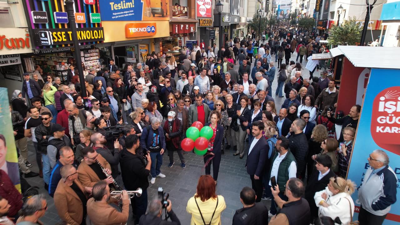 Öğle saatlerinde başlayan yürüyüşte CHP Karşıyaka Belediye Başkan Adayı B. Yıldız Ünsal ile parti örgütü, Kadın ve Gençlik Kolları, meclis üyesi adayları ile çok sayıda Karşıyakalı bir araya geldi. Bando eşliğinde hep bir ağızdan söylenen şarkılar ve marşlar büyük heyecan yarattı. Ünsal da boynunda Karşıyaka Spor Kulübü atkısıyla coşkuya ortak oldu, şarkılara eşlik etti. Çarşı’da bulunan vatandaşlar sık sık Yıldız Ünsal’ın önünü keserek fotoğraf çektirdi, sevgi gösterilerinde bulundu. Yaklaşık 2 saat süren kortej, Karşıyaka İskele’de son buldu. “ÇOK BÜYÜK BİR AİLEYİZ”