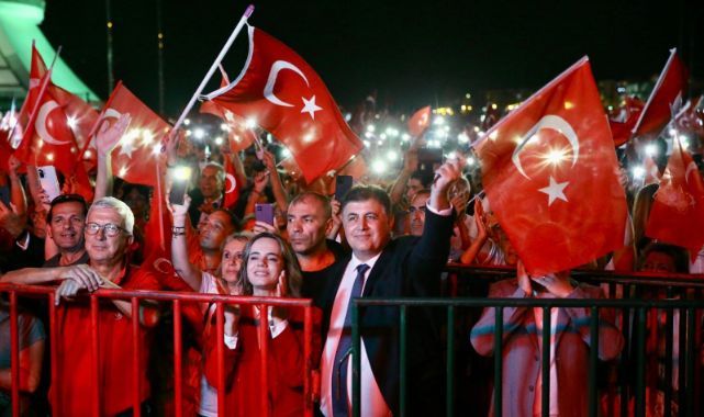 “YILMAYACAĞIZ, YORULMAYACAĞIZ!” Karşıyaka Belediye Başkanı Dr. Cemil Tugay, gecede sık sık alkışlarla kesilen konuşmasında şu ifadeleri kullandı: “Türkiye Cumhuriyeti tarihin onur sayfalarına yazılmış eşsiz bir mucize, paha biçilemez bir destandır, “Ben halkım, yeniden doğarım ölümlerden” diyen yiğit insanların öyküsüdür. Onların adı “Çılgın Türkler”dir. Onlar ateşten gömleklerle, yüzyılların karanlığıyla boğuştular, asla yılmadılar, asla dönmeyi ya da teslim olmayı düşünmediler. Bugün keyfini sürdüğümüz özgürlük ve bağımsızlığın her zerresinde onların emeği, kanı, teri, gözyaşı vardır. Bu nedenle bugün bize düşen, bir yandan bu gerçekleri unutmamak ve unutturmamak, bir yandan da başöğretmenimiz ve büyük önderimiz gibi, en yüksek sesle bir kere daha haykırmaktır: “Özgürlük ve bağımsızlık benim karakterimdir!” Cumhuriyetimiz için yılmayacağız, yorulmayacağız, korkmayacağız. Gazi Mustafa Kemal Atatürk ile yol arkadaşlarını, aziz şehitlerimizi ve 100 yıldır Cumhuriyetimiz için emeklerini ve ömürlerini adayanları sonsuz saygıyla, sevgiyle, minnetle ve bağlılıkla anıyorum. Büyük hatıraları önünde saygıyla eğiliyorum. Rahat uyuyun değerli atalarımız, çünkü sizin Karşıyaka’nız ve Karşıyakalılarınız var. Cumhuriyet bize, biz Cumhuriyete çok yakışıyoruz. Doğum günün kutlu olsun Türkiye Cumhuriyeti!”