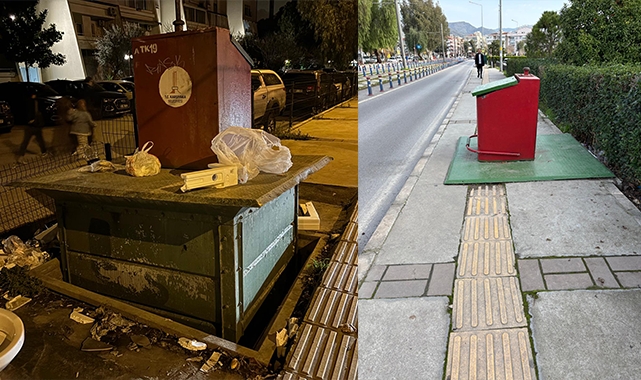 ÖNCÜŞEHİR - İzmir’in Karşıyaka ilçesinde bulunan Beşikçioğlu Caddesi’nde çekilen iki ayrı görüntü, hem yayalar hem de engelli vatandaşlar açısından ciddi risk oluşturuyor.Cadde üzerinde bulunan yer altı çöp konteynerinin yerine tam olarak yerleştirilmeden bırakıldığı görüldü.