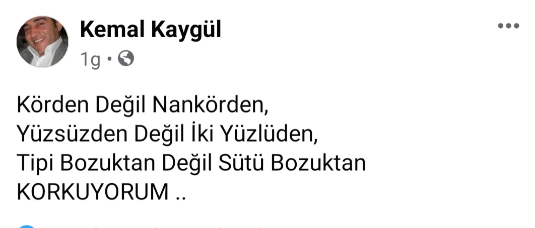 paylaşımda, “Körden değil nankörden, yüzsüzden değil iki yüzlüden, tipi