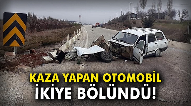 Çarpışma sonucu otomobillerden biri ikiye bölündü.