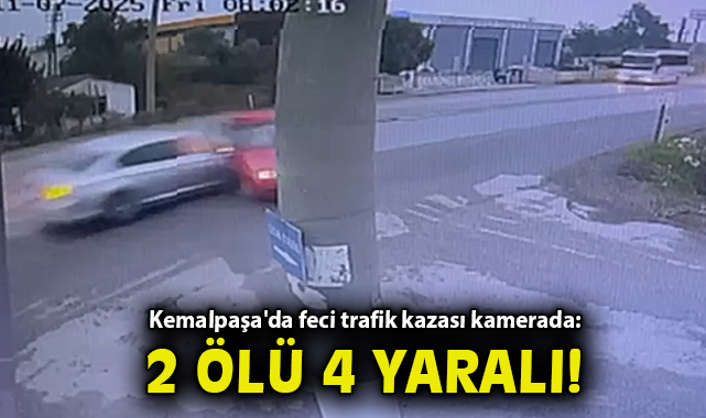 İzmir'in Kemalpaşa ilçesinde meydana gelen trafik kazasında 2 kişi hayatını kaybetti, 4 kişi yaralandı. Feci kaza, çevredeki güvenlik kameralarına da yansıdı.