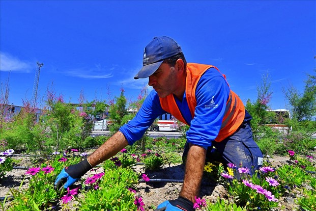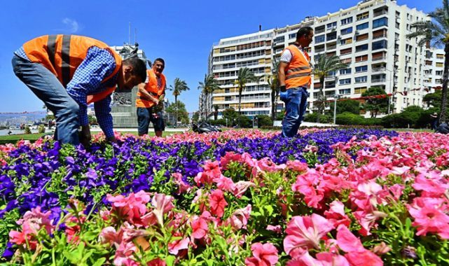 Kent estetiği için peyzaj çalışmalarına ağırlık veren İzmir Büyükşehir Belediyesi, yaz ayları öncesi kentin sokak, cadde ve meydanlarını çiçeklerle donattı. Park ve Bahçeler Dairesi Başkanlığı tarafından yürütülen çalışmalar kapsamında orta refüjlerde, tretuvarlarda, ana güzergâhlarda, kentin giriş ve çıkış noktalarında, kavşak ve meydanlarda çiçeklendirme çalışması yapıldı. Petunya, sunpatiens, begonya, kadife, vapurdumanı gibi yazlık bitkiler, godetya, karanfil, menekşe gibi kışlık mevsimlik çiçek türleri kullanıldı. Mevsimlik çiçeklerin yanı sıra su tasarrufu sağlayan Bodrum papatyası gibi uzun ömürlü yer örtücü, ılgın, zakkum, kuşdili gibi çalı bitkileri, sarılıcı ve soğanlı bitkilere yer verildi.