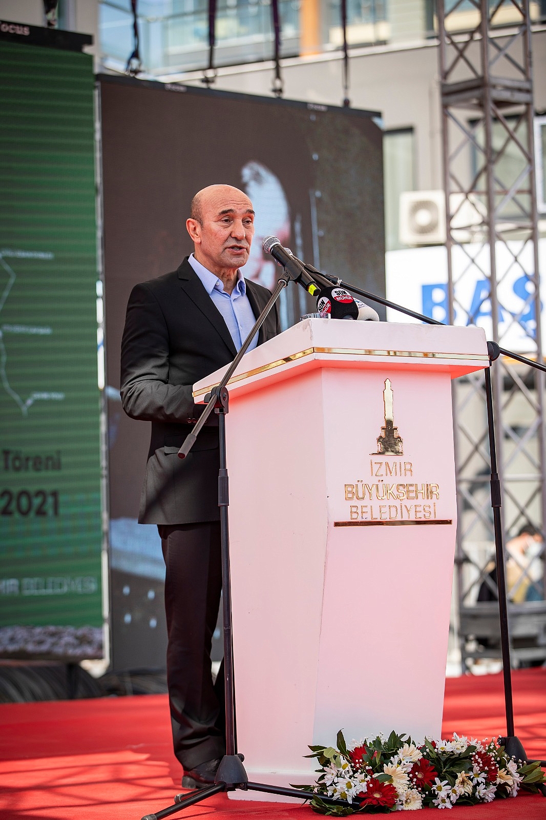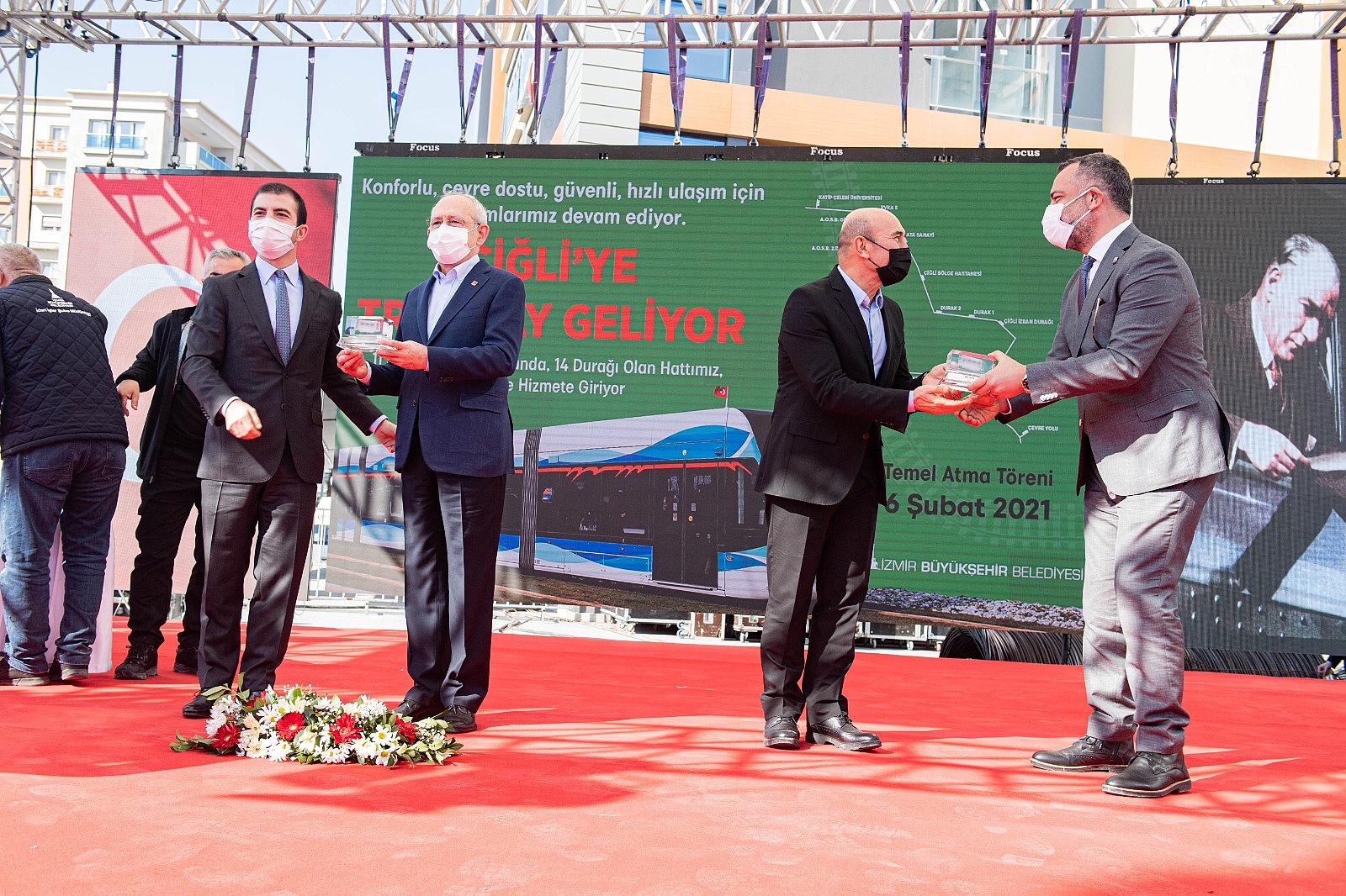 Tüm bu büyük ulaşım yatırımlarını öz kaynaklarla, belediyenin güçlü mali yapısı, uluslararası alanda yarattığı güvenilirlik sayesinde gerçekleştirdiklerini vurgulayan Soyer, sözlerini şöyle tamamladı: "Çin merkezli Asya Altyapı Yatırım Bankası, Türkiye’de ilk kez bir yerel yönetime, İzmir Büyükşehir Belediyesi’ne kredi sağladı. Tüm bunlar belediyemizin, dünyanın her yerinde saygınlığının, itibarının ve kent yönetimimize duyulan güvenin göstergeleridir. Pandemiyle derinleşen ekonomik krize, belediyemizin gelirlerinin ciddi oranda düşmesine, depreme ve en son yaşadığımız sel felaketi gibi krizlere, yaşadığımız acılara rağmen tüm yatırımlarımızı, kararlılıkla sürdürüyoruz. İzmir’de sosyal ve demokratik belediyecilik anlayışının gereğini yerine getirmeye ve vatandaşlarımızın en temel beklentilerinin başında gelen ulaşım ihtiyacını çözmeye büyük bir azimle devam ediyoruz. İzmir’in her yerine çevre dostu, nitelikli, güvenilir, engelsiz, ekonomik ve konforlu toplu ulaşımı sağlayarak kentimizin yaşam kalitesini artırmak için durmadan, canla başla, aşkla çalışıyoruz. Bugün temelini attığımız Çiğli Tramvayı’nın da bu hedeflerimizi gerçekleştirmemizde önemli bir kilometre taşı olduğunu düşünüyorum. Sayın Genel Başkanımızın İzmir için böyle mutlu bir günde, bizi onurlandırmasından büyük bir sevinç duyduğumuzu ifade ediyor, kendilerine şükranlarımı sunuyorum."Başkan Soyer'e teşekkürÇiğli Belediye Başkanı Utku Gümrükçü, "Martı sonu bahar diyerek Anadolu'ya baharı getiren Genel Başkanımız Kılıçdaroğlu Çiğli'ye gelerek baharı getirdi. Mustafa Kemal ve arkadaşları nasıl ülkeyi demir ağlarla ördüyse İzmir Büyükşehir Belediye Başkanımız Tunç Soyer ve arkadaşları da Çiğlimizi demir ağlarla örecekler. Pandemi demeden, yangın, sel, deprem demeden bütün bu şartlar altında bu ihaleyi yaparak sonuçlandıran başta Büyükşehir Belediye Başkanımız ve bürokrat arkadaşlarına teşekkür ediyorum" dedi.Nurol İnşaat Yönetim Kurulu Üyesi Oğuzhan Çarmıklı, projeyi halkın en az rahatsız olacağı şekilde iki yılda tamamlamayı planladıklarını söyledi.Konuşmaların ardından Çiğli Tramvay Hattı'nın temeli atıldı. Nurol İnşaat Genel Müdürü Nurettin Akdeniz CHP Genel Başkanı Kemal Kılıçdaroğlu ve İzmir Büyükşehir Belediye Başkanı Tunç Soyer'e teşekkür plaketi verdi. Törene CHP Genel Başkanı Kemal Kılıçdaroğlu ve İzmir Büyükşehir Belediye Başkanı Tunç Soyer'in yanı sıra CHP Genel Başkan Yardımcısı Seyit Torun, Ali Öztunç, CHP Parti Meclisi Üyesi ve İzmir Milletvekili Devrim Barış Çelik, CHP Parti Meclisi üyeleri Umut Akdoğan, Rıfat Nalbantoğlu, CHP İzmir milletvekilleri, CHP İl Başkanı Deniz Yücel, ilçe belediye başkanları ve meclis üyeleri katıldı.Hat 11 kilometre, 14 istasyonİki yıl içinde tamamlanması planlanan Karşıyaka Tramvayı’nın devamı niteliğindeki Çiğli Tramvayı, 11 kilometre uzunluğunda ve 14 istasyondan oluşuyor. Karşıyaka Çevreyolu İstasyonu’ndan başlayacak hat, bağlantı köprüsü ile Çiğli İstasyonaltı Mahallesi’ne bağlanacak. Yaklaşık 500 metrelik bağlantı köprüsü, çevre yolunun üzerinden geçecek ve köprüde tramvay hattının yanı sıra yaya ve bisiklet yolları da bulunacak. Güzergâhın büyük bölümü mevcut cadde ve yolların orta refüjlerinden geçecek şekilde çift hat olarak planlandı. Hat güzergâhı Karşıyaka Çevreyolu İstasyonu, Ataşehir, Çiğli İstasyonaltı Mahallesi, Çiğli İzban Durağı, Çiğli Bölge Eğitim Hastanesi, Ata Sanayi Bölgesi, Katip Çelebi Üniversitesi ve Atatürk Organize Sanayi Bölgesi’ne hizmet edecek ş ekilde planlandı. Ayrıca Karşıyaka Tramvayı yapımı esnasında, mülkiyet problemleri nedeni ile yapılamayan yaklaşık 1 kilometre uzunluğundaki Ataşehir-Mavişehir İzban bağlantısı da bu hattın yapımı çerçevesinde gerçekleştirilecek.Tramvay hattı 33,6 kilometreye çıkacak2017 yılında 8,8 kilometrelik Karşıyaka, 2018’de de 12,8 kilometrelik Konak hattının devreye girmesiyle tramvay İzmir’de toplu ulaşımın en önemli unsurlarından biri oldu. Çiğli Tramvayı’nın da hizmete girmesi ile İzmir’deki tramvay hatlarının uzunluğu 33,6 kilometreye ulaşacak.?