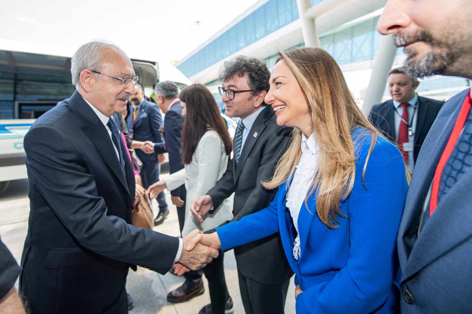 Millet İttifakı'nın Cumhurbaşkanı adayı, CHP Genel Başkanı Kemal Kılıçdaroğlu, bugün saat 15.30'da Gündoğdu Meydanı'nda düzenlenecek mitinge katılmak için İzmir'e geldi. Kemal Kılıçdaroğlu ile aynı uçakta gelen Ankara Büyükşehir Belediye Başkanı ve Cumhurbaşkanı Yardımcısı adayı Mansur Yavaş'ı Adnan Menderes Havalimanı'nda İzmir Büyükşehir Belediye Başkanı Tunç Soyer, CHP İzmir İl Başkanı Şenol Aslanoğlu, Millet İttifakı milletvekili adayları ve çok sayıda partiliyle birlikte yurttaşlar karşıladı.Kılıçdaroğlu kendisini bekleyenlerle tek tek tokalaştıktan sonra seçim arabasına bindi. Kemal Kılıçdaroğlu, yurttaşların sloganları arasında havalimanından ayrıldı.