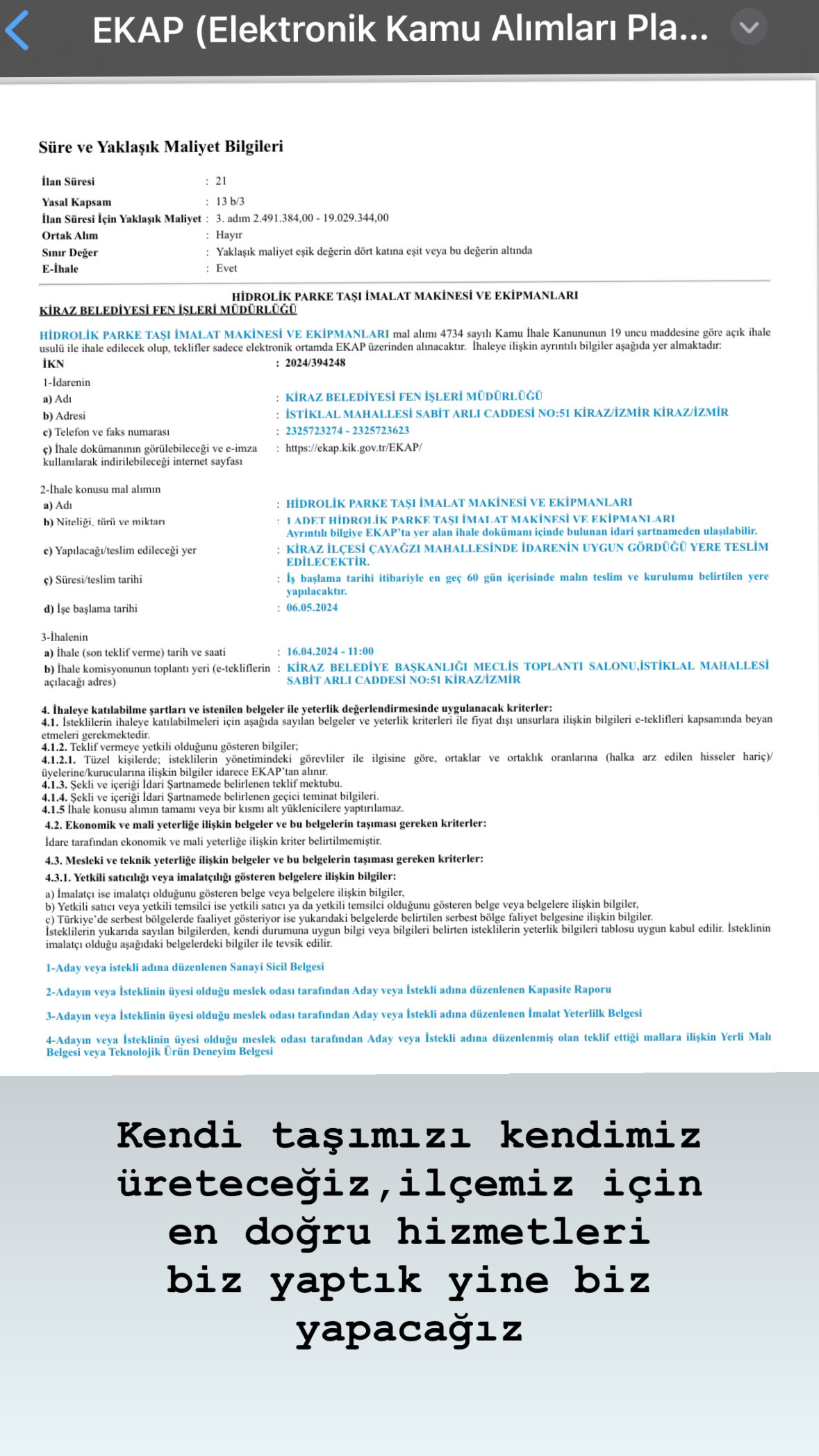 Bu sayede, ilçede büyük bir ihtiyaç olan kilit parke taşı döşeme çalışmaları daha hızlı ve daha ekonomik bir şekilde tamamlanabilecek.56 Mahalleye Kilit Parke Taşı DöşenecekKiraz'da büyük bölümü köy statüsündeyken mahalleye dönüştürülen 52 mahallenin yollarına kilit parke taşı döşenmesi için çalışma başlatıldı. Başta engelli, yaşlı ve hastaların evlerinin bulunduğu cadde ve sokaklar olmak üzere Haziran ayına kadar tüm mahallelerin yollarının kilit parke taşı ile döşenmesi hedefleniyor.