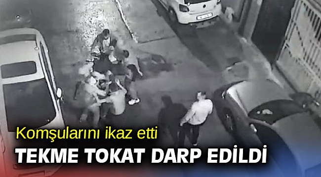 “Hukuki olarak işin sonuna kadar gideceğiz”"Eşimin yukarı kata çıkıp komşuyla konuşmasından sonra seslerin yükseldiğini duyunca oğlum ve ben yukarıya çıktık" diyen Mehmet Baykalöz (64) da “Binada yaşanan arbedenin ardından komşularımız karakola gidip şikayetçi oldular. Haliyle biz de kendilerinden şikayetçi olduk. Karakol dönüşü evimizin önünde duran siyah araçtan kalabalık bir grup indi. Şahıslar oğluma, ‘gel biz seninle konuşacağız, bir yere kadar gidelim' dediler. Ben buna mani olmak için ‘benimle konuşun' dememe kalmadan arkadan 5-6 kişi bize saldırmaya başladı. Görüntülerde mevcut; yerlerde sürünüyoruz. Tabii komşuların gelmesiyle şahıslar kaçtı ve ardından polisler ile ambulans geldi. Biz bu olaydan şikayetçiyiz. Darp raporları ve görüntüler elimizde var. Hukuki olarak işin sonuna kadar gideceğiz” diye belirtti.Ahmet Baykalöz (30) ise yapmış olduğu açıklamasında, “Tekmeler ve tokatlar ile babamı ve beni darp ettiler. Bu tarz durumların bir daha yaşanmaması için hukuki açıdan elimizden ne geliyorsa onu yapacağız” diye ifade etti.Yaşanan dehşet anları güvenlik kamerasına yansıdıÖte yandan sokakta bulunan bir eve ait güvenlik kamerasına ise korku dolu anlar saniye saniye yansıdı. Görüntülerde, bina içerisine giren şahıslar daha sonra aşağıya inerek aracın yanına gelirken, şüphelilerden birisinin ise elinde tepsi ile aracın yanına geldiği, bir süre sonra ise evlerinin önüne gelerek taksiden inen aile bireylerine şahısların saldırdığı, anne Sevil Baykalöz'ün oğlu ve eşini saldırganlardan kurtarmaya çalıştığı dehşet anları görülüyor.Ayrıca, olayın ardından şüphelilerin hızla olay yerinden kaçtığı ve izlerini kaybettirdikleri öğrenildi.