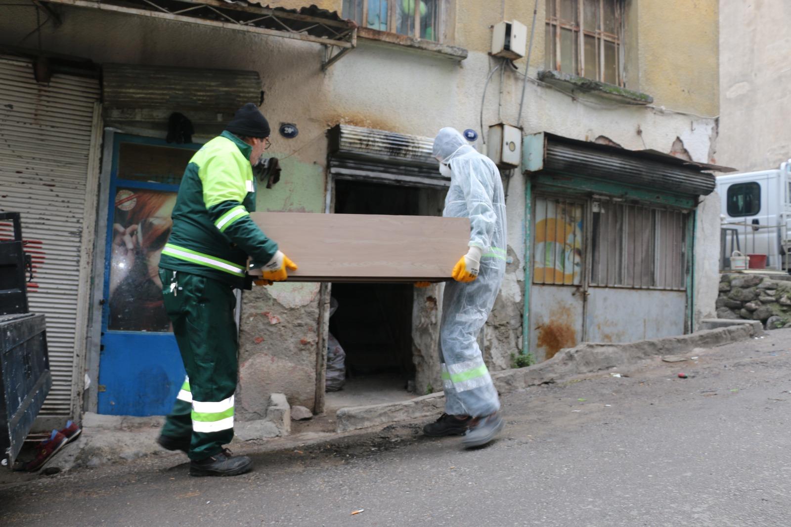 gelen talep ve şikayetler üzerine tespit edilen ‘çöp evleri’ temizliyor. 2018