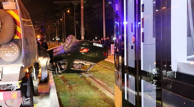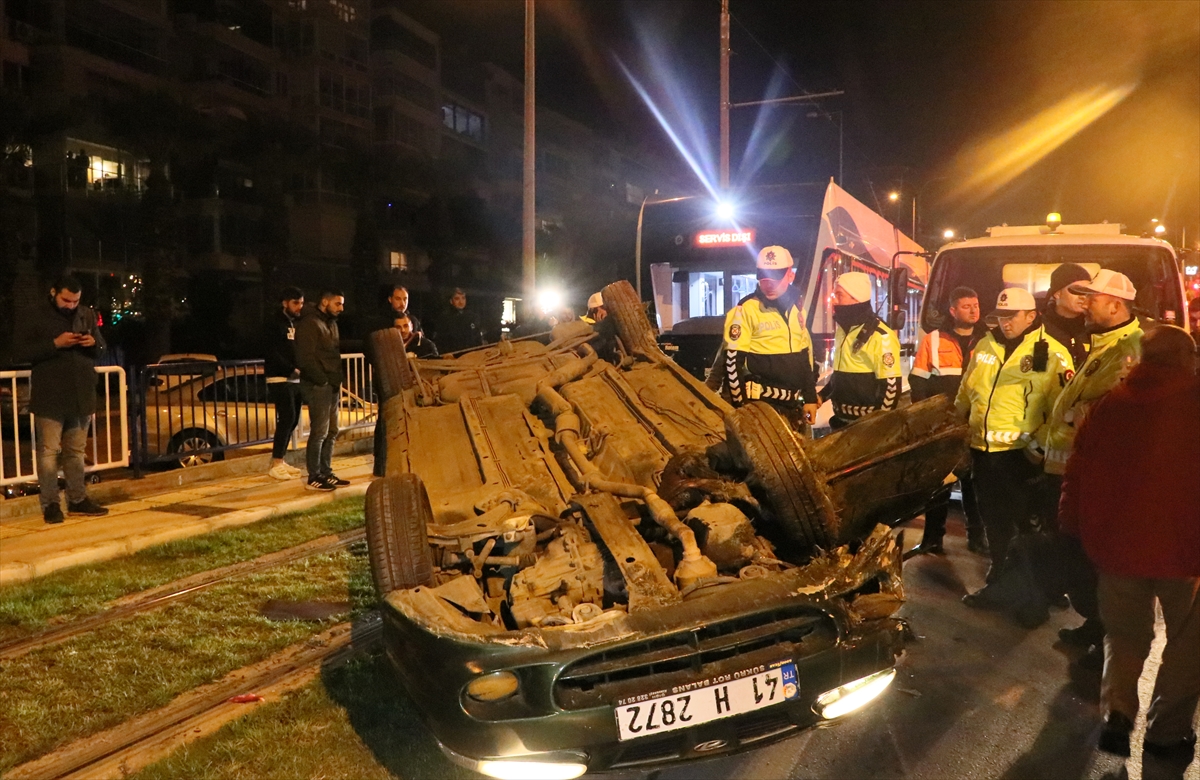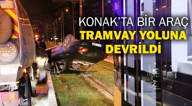 Alınan bilgiye göre, Günay A. (51) idaresindeki 41 H 2872 plakalı otomobil, Göztepe'den Konak istikametine giderken Mustafa Kemal Sahil Bulvarı'nda sürücünün direksiyon hakimiyetini kaybetmesi sonucu takla atıp tramvay yoluna devrildi.