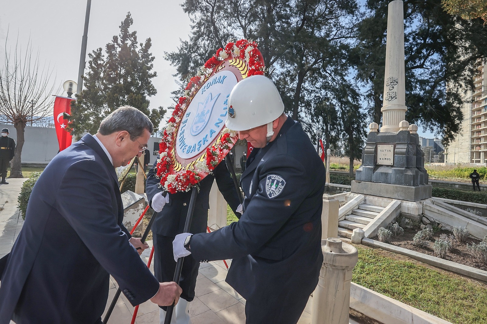18 Mart Şehitleri Anma Günü ve Çanakkale Zaferi’nin 107. yıldönümü dolayısıyla Konak Kaymakamlığı tarafından Halkapınar İstiklal Şehitliği’nde tören düzenlendi. Törene Konak Kaymakamı Gökhan Görgülüaslan, Konak Belediye Başkanı Abdül Batur, Personel Albay Abdi Şimşek, Cumhuriyet Halk Partisi Konak İlçe Başkanı Akın Küçükoğullarından, Türkiye Harp Malulü Gaziler, Şehit, Dul ve Yetimleri Derneği İzmir Şubesi Yönetim Kurulu Üyesi Şule Ural, protokol ve vatandaşlar katıldı. Saygı duruşu ve İstiklal Marşı’nın okunmasıyla başlayan tören, anıta çelenk sunulmasının ardından günün anlam ve önemini anlatan konuşmaların yapılmasıyla sona erdi. Batur: Tüm gazi ve şehitlerimizi rahmet ve minnetle anıyorumKonak Belediye Başkanı Abdül Batur, Çanakkale Zaferi’nin yıldönümü dolayısıyla yayınladığı kutlama mesajında, Atatürk’ün “Türk Milleti bağımsız yaşamış ve bağımsızlığı var olmalarının yegâne koşulu olarak kabul etmiş cesur insanların torunlarıdır. Bu millet hiçbir zaman hür olmadan yaşamamıştır, yaşayamaz ve yaşamayacaktır” sözlerinin altını çizerek, “Ulu Önder Mustafa Kemal Atatürk başta olmak üzere tüm gazi ve şehitleri rahmet ve saygıyla anıyorum” dedi.