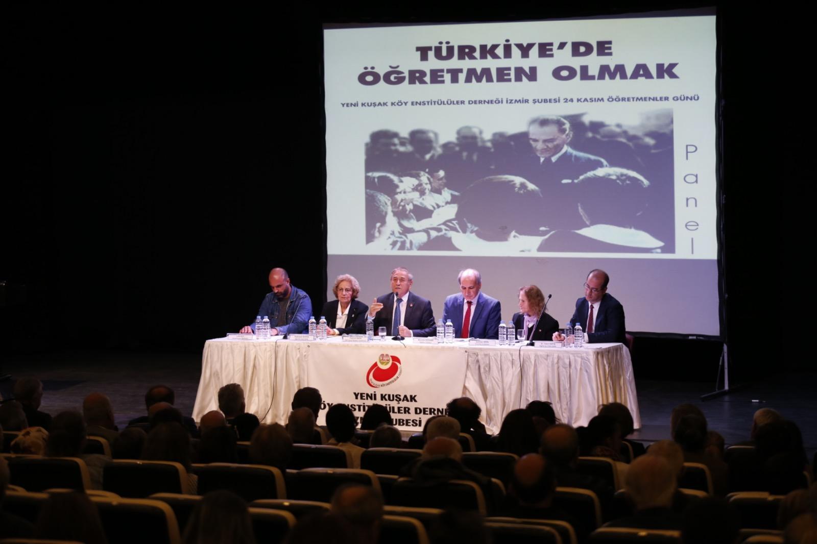 Köy enstitüleri mezunu öğretmenler, sivil toplum kuruluşları temsilcileri ile Konak Belediyesi meclis üyelerinin de katıldığı panelin açılışında bir konuşma gerçekleştiren Konak Belediye Başkanı Abdül Batur, tüm öğretmenlerin 24 Kasım Öğretmenler Günü’nü kutlayarak konuşmasına başladı. Panelden bir saat kadar önce, 92 yaşındaki ilkokul öğretmeni Neriman Oğuzer’i ziyaret ettiğini belirten Batur, “Her 24 Kasım’da onu ziyaret etmekten, elini öpmekten gurur duyuyorum. Kendisi de köy enstitüsü mezunudur. Atatürk ilke ve inkılaplarına bağlı kalarak, laik anlayışla üretken bir insan, toplum nasıl yetiştirilir bunu göstermiş çok güzel bir örnektir. Her şeyin temeli önemlidir. Bizim de temelimizi sağlam attı; ona minnettarım. Bizleri Atatürk ilke ve inkılapları ışığında yetiştiren tüm öğretmenlerimize borcumuz büyük ve ödememiz de mümkün değil. Bizi yetiştiren, bizi bugün olduğumuz insanlar haline getiren öğretmenlerimize bir hayat borçluyuz” diye konuştu.