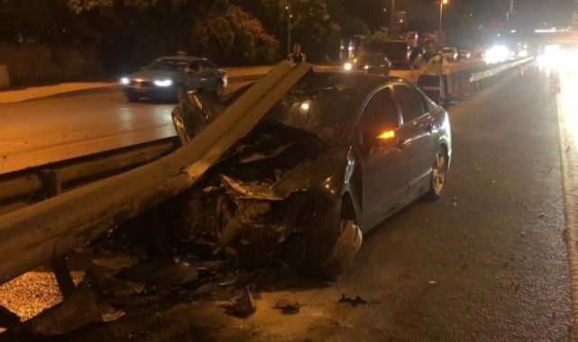 Kaza saat 01.30 sıralarında D-100 Kara Yolu Kadıköy istikameti Göztepe mevkiinde meydana geldi. İddiaya göre 34 TU 4310 plakalı Honda marka otomobil sürücüsü A.G. isimli şahıs seyir halindeyken direksiyon hakimiyetini kaybetti. Hakimiyetini kaybeden otomobil sürücüsü yol kenarında bulunan demir bariyerlere ok gibi saplandı. Durumun bildirilmesi üzerine olay yerine itfaiye sağlık ve polis ekipleri sevk edildi.Kazanın etkisiyle araç kullanılamaz hale gelirken otomobil sürücüsü A.G. şans eseri kazayı hafif yaralı olarak atlattı. İhbar üzerine olay yerine gelen sağlık ekipleri kazayı hafif yaralı atlatan sürücüye ilk müdahaleyi ambulansta yaptı. Kaza nedeniyle, D-100 Kara Yolu Kadıköy istikametinde trafik yoğunluğu oluşurken, kazayı haber alan sürücünün yakınları olay yerine gelerek kaza yapan sürücü A.G.'yi sarılarak teselli etti. Kaza yapan otomobil çekici yardımı ile yoldan kaldırıldı. Polis ekipleri kaza ile ilgili çalışma başlattı.