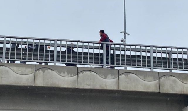 Antalya’da köprülü kavşak üzerinde demirlerin arasına çıkarak intihar girişiminde bulunan şahıs, polis ekiplerine sağanak yağmur altına zor anlar yaşattı. Polislerin sırılsıklam ıslandığı olayda şahsın polislerin her yaklaşmasında uzaklaştığı görüldü.