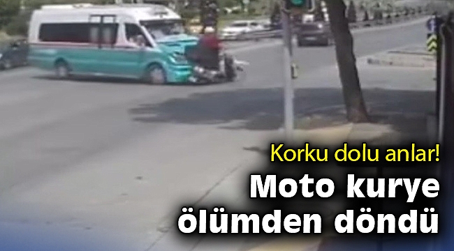 Öte yandan, kaza anı cadde üzerinde bulunan bir iş yerinin güvenlik kamerasına anbean yansıdı. Görüntüde, sürücüsünün hatalı dönüş yaptığı minibüsün, karşı yönden gelen motosiklet ile çarpışması sonucunda, motorlu kuryenin takla atarak sürüklendiği görüldü. Minibüs şoförünün ifadesi alınmak üzere emniyete götürüldüğü öğrenildi.