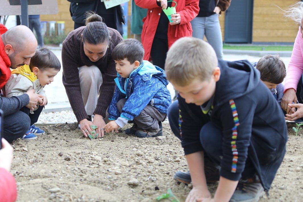 Başkan Ceritoğlu Sengel, çocuklarla birlikte Efes Tarlası Yaşam Köyü plantasyon alanında çocuklarla birlikte fide ekti.