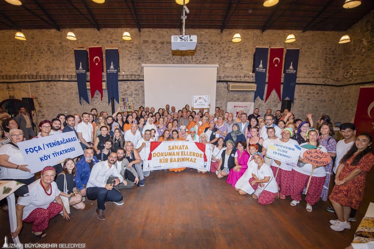 “Türkiye’de ilk kez bir belediye Köy Tiyatrosu kurdu”Buluşmaya yöre halkını da davet eden İzmir Büyükşehir Belediyesi Köy Tiyatroları Koordinatörü ve yönetmen Vedat Murat Güzel, “Türkiye’de ilk kez bir belediye Köy Tiyatrosu kurdu. Tiyatroyu ne kadar çok insanla buluşturursak, şehrin sosyal yaşamı o oranda farkındalık yönü gelişmiş bir topluluğa emanet olacak. Köy Tiyatroları Buluşmaları ile kültürel etkileşimi artırmayı hedefliyoruz. Ayrıca köy enstitülerinden ilham alarak köylerin yaşantılarını, geleneklerini, ağız ve yöresel danslarını öğrenmeye, daha sonra da bunu sunmaya çalışıyoruz. Böylelikle toprağın, yörenin belleğini ortaya çıkartıp gelecek nesillere kalmasını sağlıyoruz. Buluşmalarımız yıl içinde başka köy tiyatrolarıyla da devam edecek” dedi.
