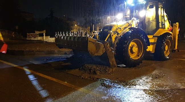 ekipleri, çalışmalarına sabah saatlerinde de devam etti. Sağanak nedeniyle kent