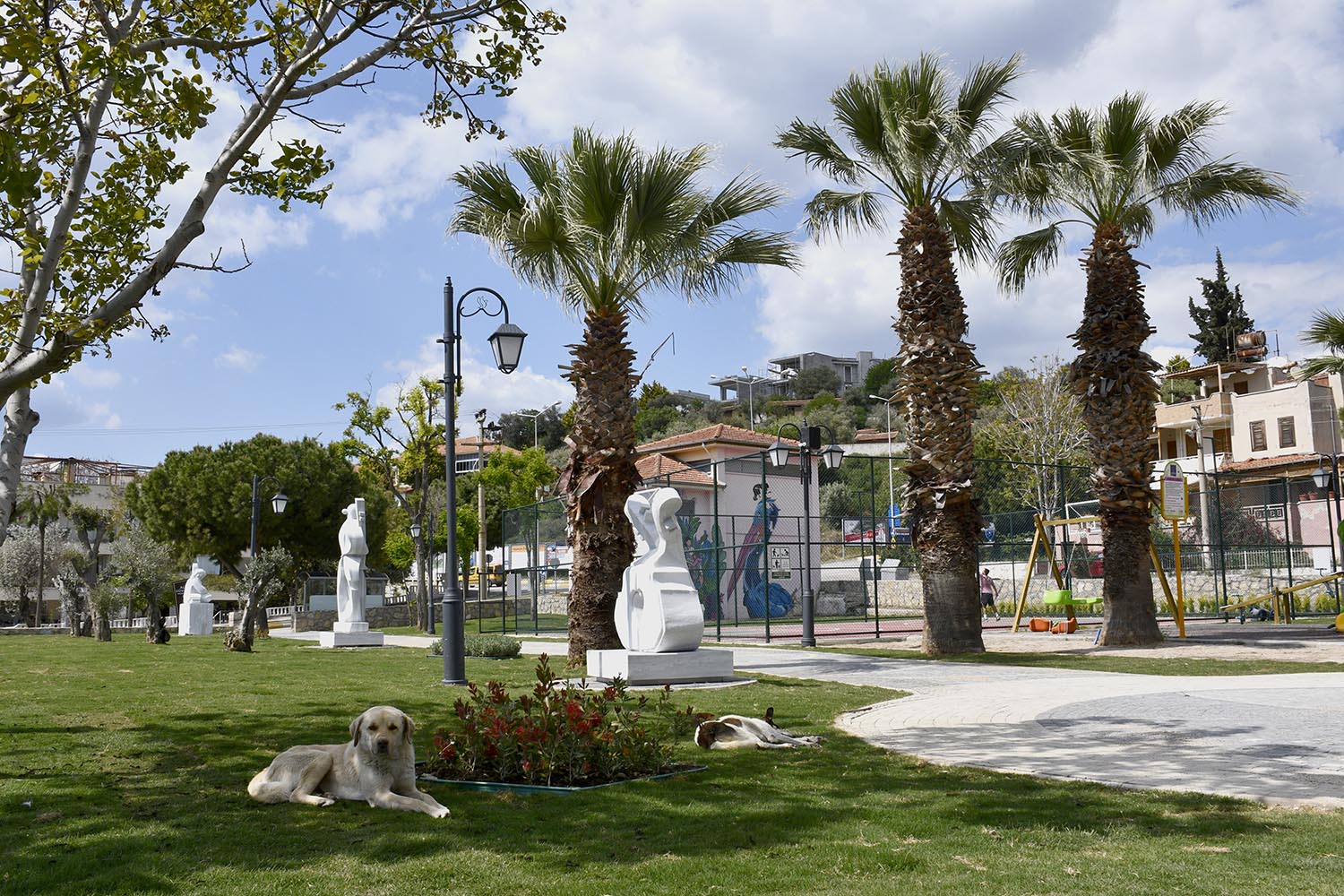 Kuşadası Belediyesi'nin “Daha Yeşil Bir Çevre” hedefiyle farklı mahallelerde eş zamanlı olarak yürüttüğü park yapım ve yenileme çalışmaları kapsamında yaşama geçirdiği temalı parklar ile kente değer ve estetik katmaya devam ediyor. Son 4 yılda kente 6 temalı park kazandıran Kuşadası Belediyesi Park ve Bahçeler Müdürlüğü ekipleri son olarak, ‘müzik’ temalı Altın Güvercin Müzik Parkı’nın yapımını da tamamladı.Çalışmalar kapsamında ilk etapta mevcut park alanını bin 500 metrekare genişleten ekipler, daha sonra alana elektrik ve sulama altyapısı döşedi. Ardından park alanının 409 metrekarelik bölümü, begonit taş ile kaplanarak yürüyüş yolu yapıldı. Alana, Kuşadası Belediyesi tarafından kesilmekten kurtarılan 20 zeytin ağacı da dikildi. Eski ve tahrip olmuş oyun grupları ise çocuklar için daha sağlıklı olan ahşap oyun gruplarıyla değiştirildi. Ayrıca parkta bulunan basketbol sahasının, bakım ve onarımı yapılarak yenilendi.AÇIK HAVADA SANAT KEYFİGerçekleştirilen yenileme çalışmasıyla modern ve estetik bir görünüme kavuşturulan Altın Güvercin Müzik Parkı’na, son olarak 3. Neopolis Heykel Sempozyumu’nda yapılan 4 heykel yerleştirildi. Heykellerin sergilenmeye başlamasıyla alan, açık hava sanat galerisi görünümüne kavuştu.