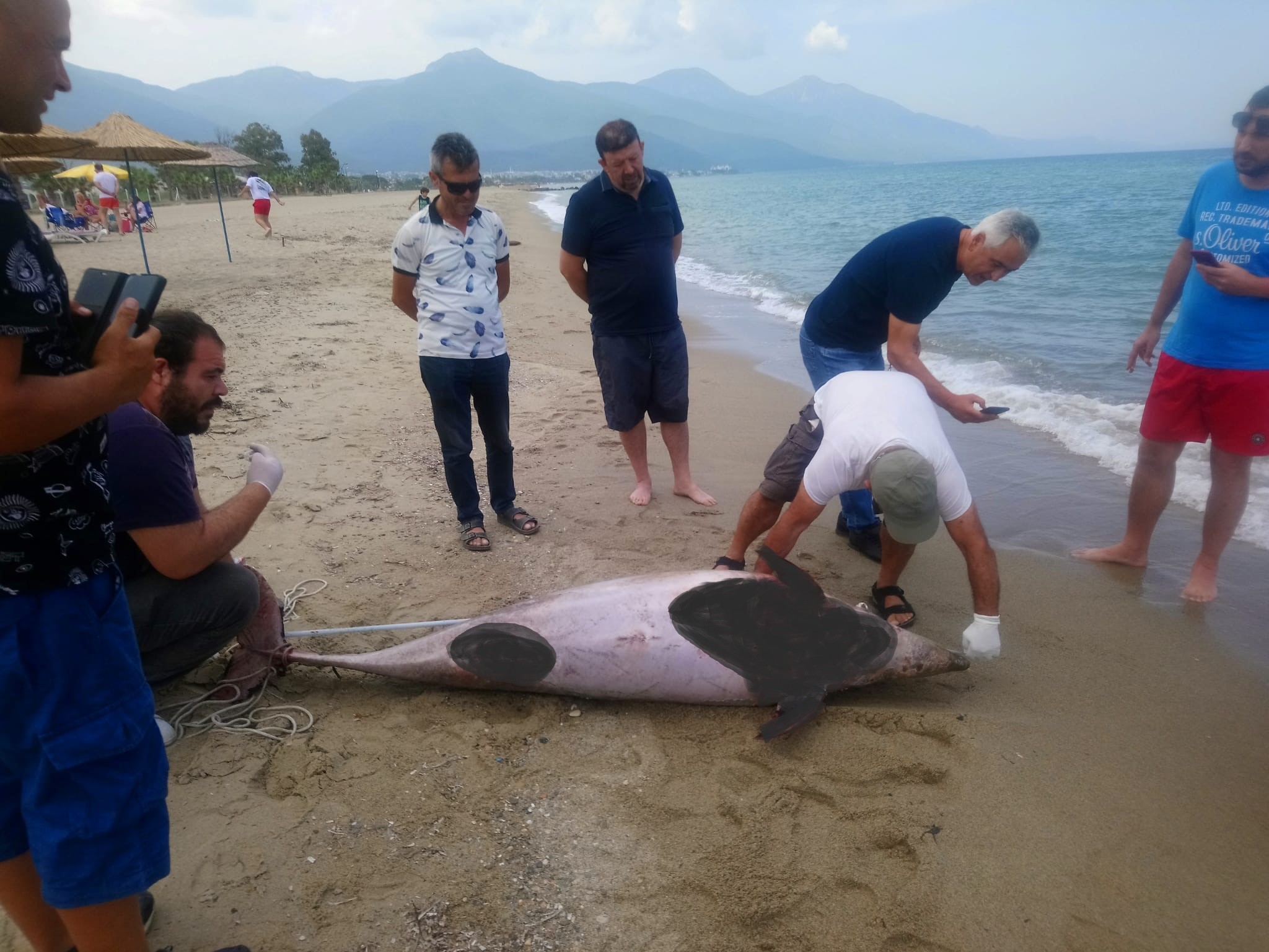 Kuşadası’nda sahilde yunus balığı görenler Ekosistemi Koruma ve Doğasevenler Derneği yetkililerine haber verdi. Bölgeye gelen dernek yetkilileri her iki yunusunda telef olduğunu ve yüzeylerinde bozulma olduğu görüldü. Yunusların ölçümleri yapılırken, küçük olanın 1.17 metre, büyük olanın 2.15 metre uzunluğunda olduğu tespit edildi. TÜDAV (Türk Deniz Araştırmaları Vakfı)’na gönderilmek üzere, Yunuslardan doku ve diş örnekleri alındı.