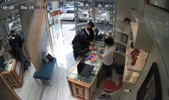 Olayın ardından incelenen güvenlik kameralarında, kuyumcuya gelen şahısların bileklik sorduğu, bazı bileklikleri incelediği görünüyor. Görüntülerde, beğendikleri bir bilekliğin fiyatını soran şahısların, tezgahtarın hesaplama yaptığı sırada birden fazla bileklik alıp el çabukluğu ile tezgaha bir bileklik eksik olarak bıraktığı anlar yer alıyor.