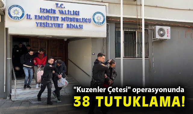 İzmir merkezli 7 ilde yürütülen, işsiz, pazarlamacı, öğrenci oldukları tespit edilen kişiler adına banka, kripto para nezdinde hesaplar açarak paravan şirket kuran ve 550 milyona yakın vurgun yapan "Kuzenler" adlı çeteye yönelik operasyonda gözaltına alınan 42 şüpheliden 38’i çıkarıldığı mahkemece tutuklandı.
