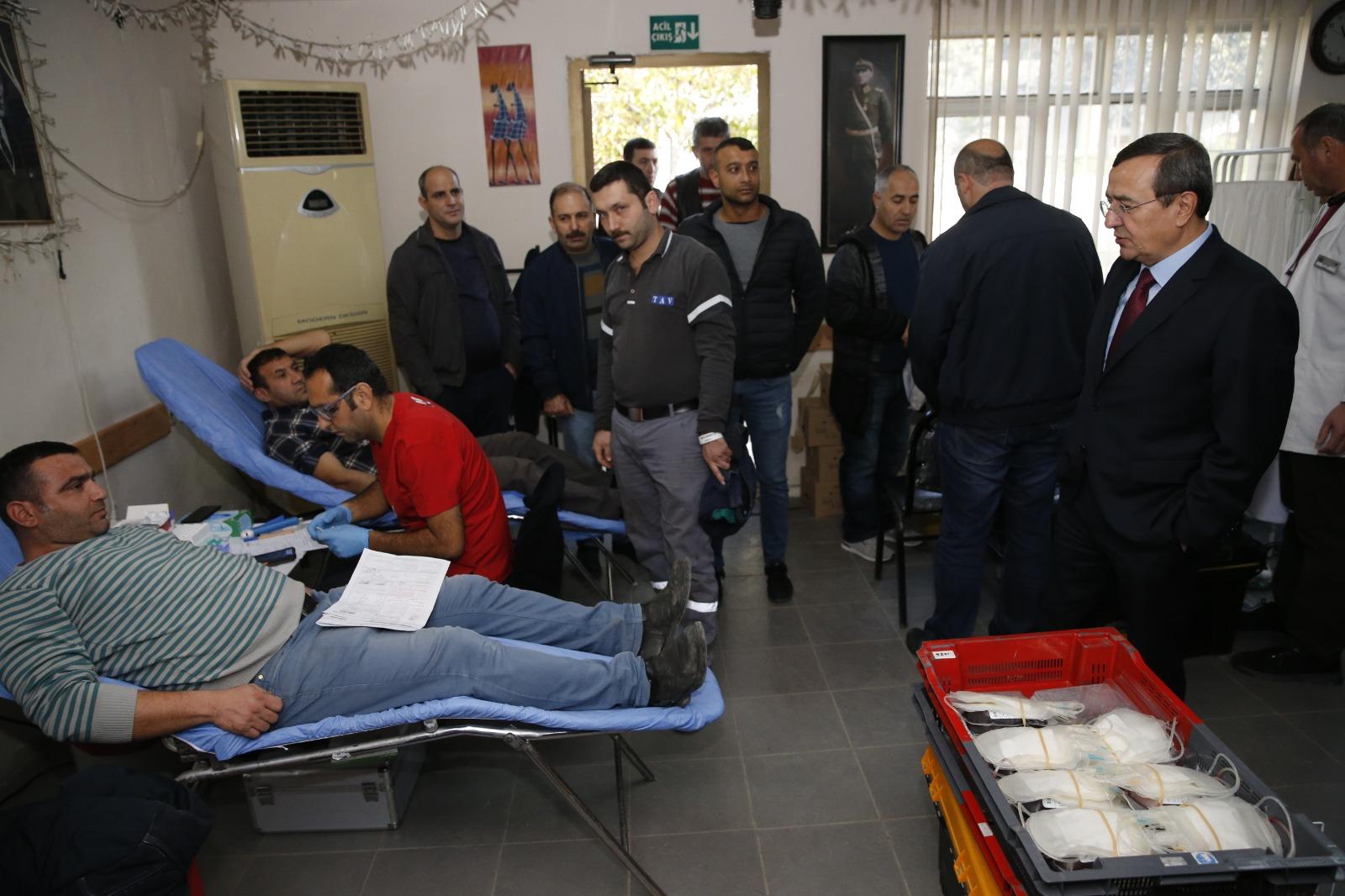 bulunan şantiyesine davet edilen Kızılay Gezici Kan Bankası ekiplerine, kan ve