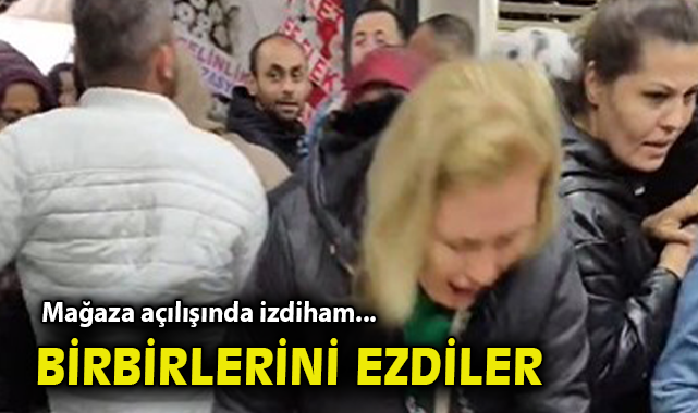 Bergama ilçesi Ertuğrul Mahallesi'nde bir züccaciye dükkanının açılışına özel indirim kampanyası düzenlendi. Mağazanın indirimini duyan vatandaşlar ise dükkanın önüne akın etti. Kapıların açılmasıyla birlikte içeriye girmek için koşturan vatandaşlar adeta birbirlerini ezdi.
