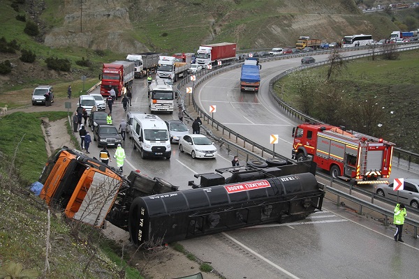 karışan tankerin yoldan kaldırılması ile trafik normal seyrine döndü.