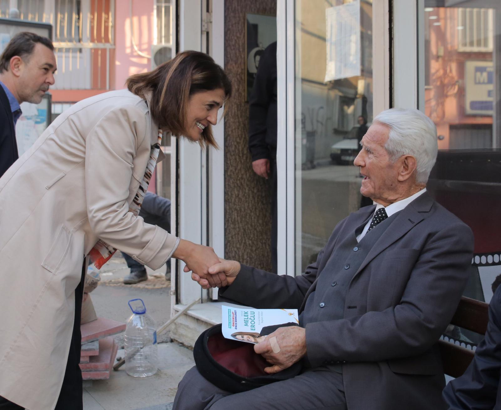 Cumhur İttifakı AK Parti Konak Belediye Başkan Adayı Melek Eroğlu, Hatay Murat Reis Mahallesi ve Yeşillik Caddesi’nde esnaf ziyareti yaptı, vatandaşlarla kucaklaştı. Mahalle sakinlerinin sohbet davetlerini geri çevirmeyen Eroğlu, “Bugüne kadar neredeyse hiç girilmemiş ve maalesef yok sayılmış Konak’ta yaşamak zorunda kalan hemşehrilerimiz bizim belediyecilik anlayışımızla yepyeni bir dönem yaşayacak. Ayrıma tabi tutulmadan herkese eşit hizmet götüreceğiz. Semtler ve mahalleler arasında uçurum kalkacak. Daha yeşil, daha etkin, daha huzurlu bir Konak olacak. Konak’ta yaşamak ayrıcalık olacak. Kimse artık başka ilçelere göç etmek zorunda kalmayacak. Hemşehrilerimiz, kısa süre içerisinde kaliteli hizmetle buluşup potansiyeli gün yüzüne çıkan ilçemizde yaşamak isteyecek. Konak her alanda cazibe merkezi olacak, ilk tercih edilen ilçe olacak” diye konuştu.