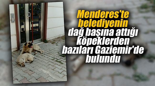Geçtiğimiz günlerde İzmir'in Menderes ilçesi, belediye görevlileri tarafından hukuka aykırı bir şekilde dağ başına bırakılan köpeklerin haberiyle çalkalandı. İzmir ve tüm ülkedeki hayvanseverlerin büyük tepkisini çeken olayda yeni bir gelişme daha yaşandı. Efemçukuru mevkiisinde dağ başına bırakılan köpeklerden bazıları Gaziemir ilçesinde bulundu.