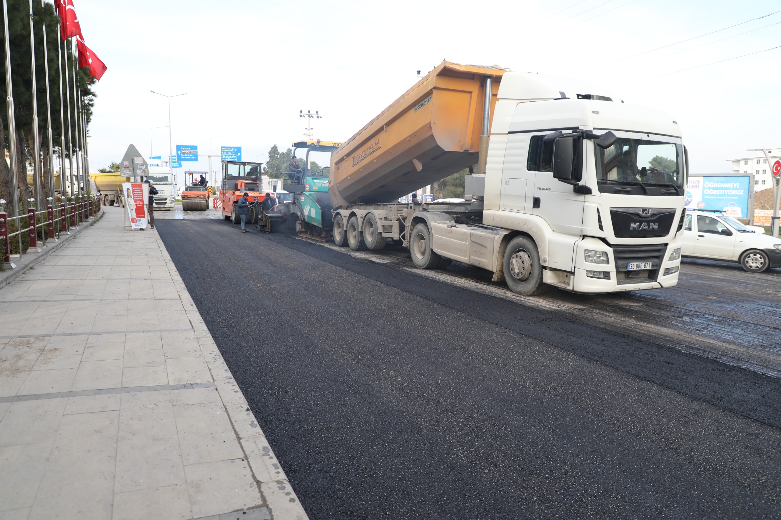 Menderes’te ki ana caddelerde asfaltla çalışmaları hız kazandı. İlçenin en işlek