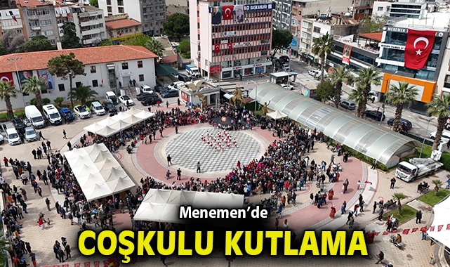 Menemen'de 23 Nisan Ulusal Egemenlik ve Çocuk Bayramı kutlamalarının merkeziyse, Menemen Cumhuriyet Meydanı oldu. Menemen Belediye Başkanı Aydın Pehlivan, Menemen Kaymakamı Vedat Yılmaz, Menemen Garnizon Komutanı Topçu Albay Zekeriya Tosun, Menemen Cumhuriyet Başsavcısı Hüseyin Kaçar, kamu kurum ve kuruluşlarının temsilcileri, siyasi parti ve STK temsilcileri, gaziler, çocuklar ve vatandaşlar katıldı. Saygı duruşu ve İstiklal Marşı'nın ardından Menemen İlçe Milli Eğitim Müdürü Sibel Ağaoğlu Özer, günün önemini belirten konuşmasını yaptı. Özer'in konuşmasının ardından program, şiirler ve yurdumuzun dört bir köşesine ait halk oyunlarının oynanmasıyla tamamlandı. Minik öğrencilerin program boyunca başarılı performansları, izleyenlerden büyük alkış aldı.