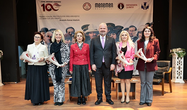 Menemen Belediye Başkanı Aydın Pehlivan ise konuşmasında Cumhuriyet değerlerinin korunacağını vurguladı. Başkan Pehlivan, "Cumhuriyetimizin kurucusu Gazi Mustafa Kemal Atatürk’ün liderliğinde gerçekleştirilen reformlar, milletimizin çağın gereklerine uygun bir hukuk düzenine kavuşmasını sağlamıştır. Bu kanunla birlikte; tek eşlilik esası benimsenmiş, resmî nikâh zorunlu hale gelmiş, boşanma hukuki güvenceye bağlanmış, kadınlar mirasta, mal varlığında ve aile hukukunda erkeklerle eşit haklara kavuşmuştur. Kadınlarımız istedikleri mesleği seçebilme, mahkemelerde tanıklık yapabilme ve toplumsal hayatta daha aktif yer alabilme imkanına sahip olmuştur. Bu düzenleme, yalnızca hukuki bir değişiklik değil; toplumsal hayatın adalet ve eşitlik temelinde yeniden inşası anlamına gelmiştir. Bu düzenleme, yalnızca hukuki bir değişiklik değil; toplumsal hayatın adalet ve eşitlik temelinde yeniden inşası anlamına gelmiştir. Bizler bugün, 100 yıl önce atılan bu adımın mirasçılarıyız. Cumhuriyetimizin temel kazanımlarını korumak ve geliştirmek hepimizin ortak sorumluluğudur. Kadınların eğitimde, üretimde, siyasette ve sosyal hayatta daha güçlü yer alması; sadece bir eşitlik meselesi değil, aynı zamanda kalkınma ve güçlü toplum meselesidir. Biz Menemen’de kadınları sadece belirli günlerde hatırlayan değil; hayatın her alanında destekleyen bir anlayışla çalışıyoruz. Kadını sosyal hayatın kenarında değil, ekonominin, üretimin, kültürün ve karar süreçlerinin merkezinde görüyoruz. Bizim anlayışımızda kadın; emanet edilen değil, omuz omuza yürüdüğümüz yol arkadaşıdır. Kadın emeğini destekleyen, kadın girişimciliğini teşvik eden, kadınların kendini güvende ve değerli hissettiği bir şehir için kararlılıkla çalışmaya devam edeceğiz. Bu vesileyle; başta Gazi Mustafa Kemal Atatürk olmak üzere, bu reformun hayata geçirilmesinde emeği geçen tüm devlet büyüklerimizi rahmet ve minnetle anıyor; kadınlarımızın toplumsal hayattaki güçlü duruşunu saygıyla selamlıyorum." dedi.