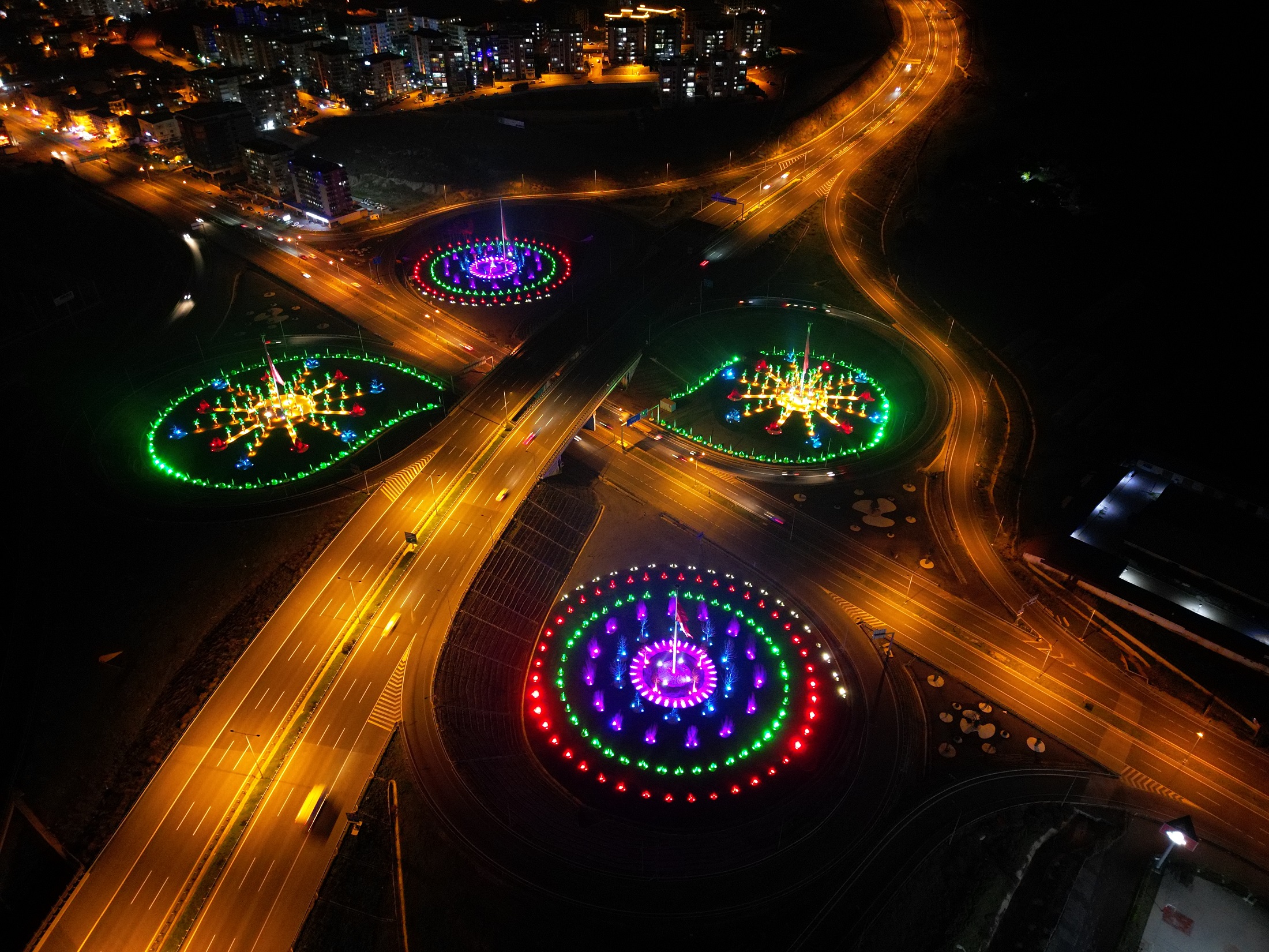 Koyundere Otoyol Kavşağı’nda yapılan çalışmaların final noktasıysa dev bayraklar oldu. 15